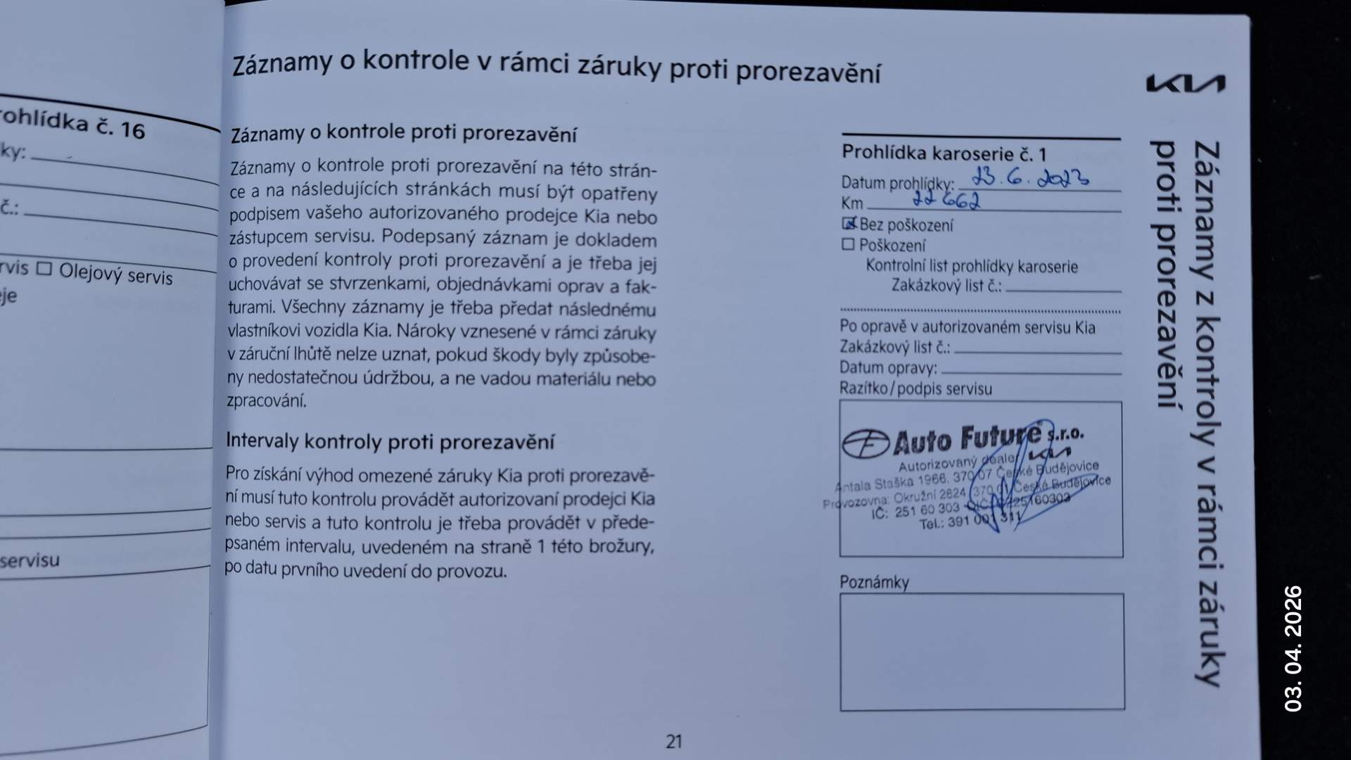 TOP stav, nehavarováno, záruka, odměna 1.000 Kč za sdílení - VIN U5YH4812AML098126 - rok výroby červen 2021, uvedení do provozu 23.6.2021 - motor 1.0 T-GDI GPF ISG, řadový tříválec 988 ccm, 88 kW - 1. majitel Jaromír Fau (603 806 582) - servisováno výhradně v autorizovaném servisu - 1.4.26 najeto 55.000 km - tovární záruka na auto do 15.6.2028 - tovární záruka na karoserii do 15.6.2033 - STK do června 2027 - platná KIA Asistence - auto je po celou dobu NEKUŘÁCKÉ! - nikdy nevozilo "domácí mazlíčky"! - parkování v nevytápěné garáži - po celou dobu pouze ruční mytí - letní pneu na 16“ ALU discích (vzorek 4,3 až 4,8 mm) - zimní pneu (vzorek 5,7 až 6,6 mm) - parkovací kamera + senzory - vyhřívaný volant a přední sedačky - kůží potažený volant a řadící páka - tempomat / omezovač rychlosti - Android Auto / Apple CarPlay - přední mlhovky s přisvětlováním do zatáčky - Hlídání tlaku v pneu pomocí ABS – nejsou potřeba speciální ventilky! - kompletní sada originálních zástěrek