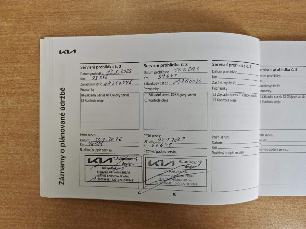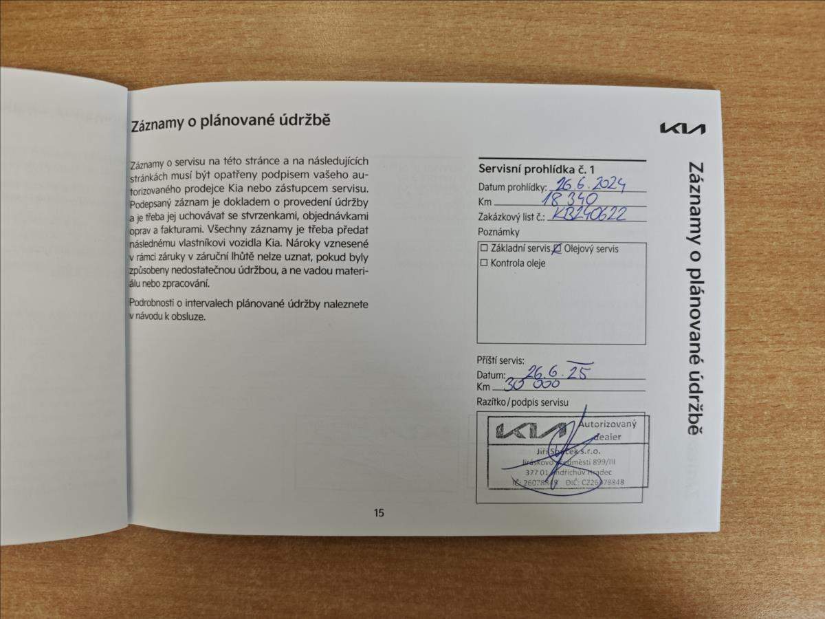 První majitel; Velmi zachovalý vůz po prvním majiteli; koupený nový a servisovaný v KIA - Jiří Souček s.r.o.; nehavarovaný ani jinak lakovaný; servisní kniha - poslední servisní prohlídka 1/2026 v 51.649km; doložený stav tachometru; 2x klíče; vše plně funkční. Dálniční známka platná do 17.9.2026 k vozu. Možnost odpočtu DPH! Cena bez DPH: 446.264Kč;