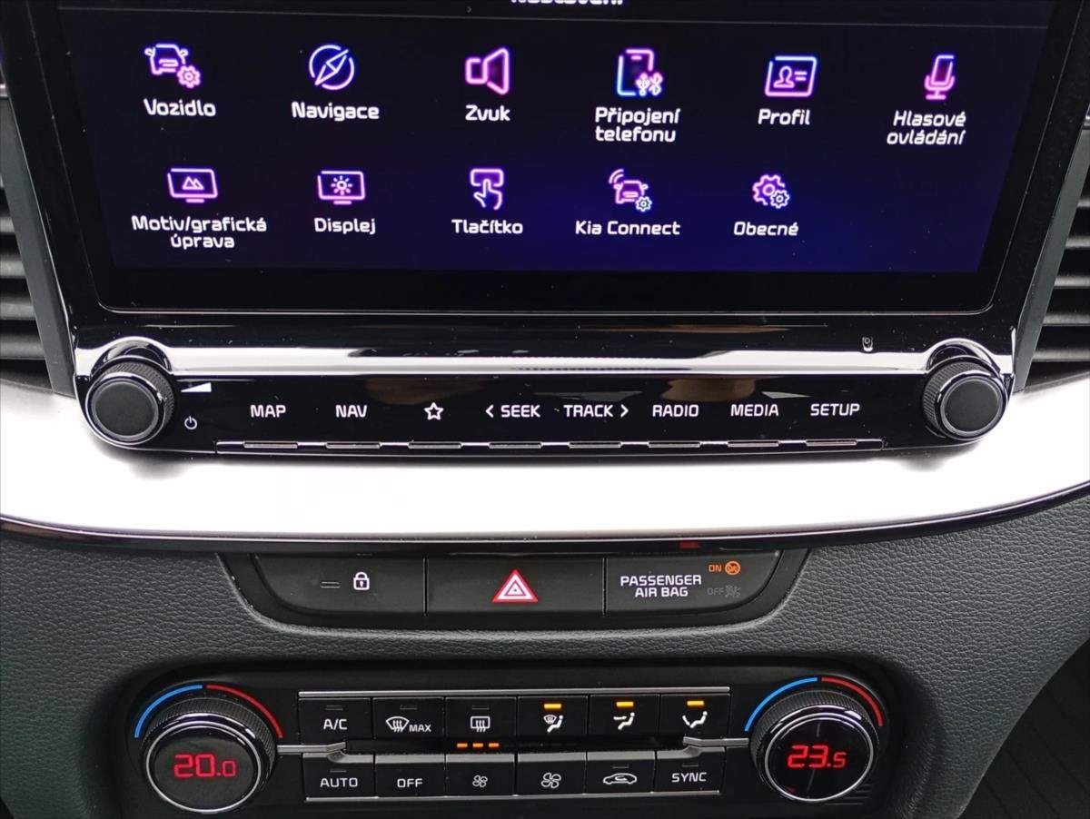 Tovární záruka do 12/2031; servis výhradně v autorizovaném servise Kia; LED světlomety; automatická převodovka; vyhřívaný volant a přední sedačky; adaptivní tempomat; parkovací kamera; parkovací senzory přední i zadní; multifunkční volant; rozpoznávání dopravních značek; asistent držení v jízdních pruzích; navigace; zrcadlení mobilního telefonu.;