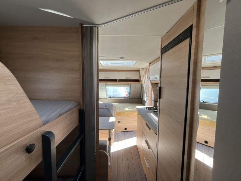 13-ti kolíková elektro zásuvka pro tažné vozidlo; detektor kouře; koupelna s toaletou; kuchyňka; moskytiéra ve vstupních dveřích; palanda; sedací sestava přestavitelná na lůžko; vodní filtr BWT Camp-Mini; zesílené stabilizační vzpěry;