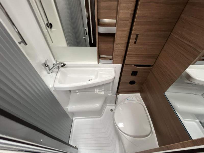 kuchyňka; laťovy rošt na pevnych lůžkách; skříňky a úložné prostory s odvětráním; toaleta se sprchou;