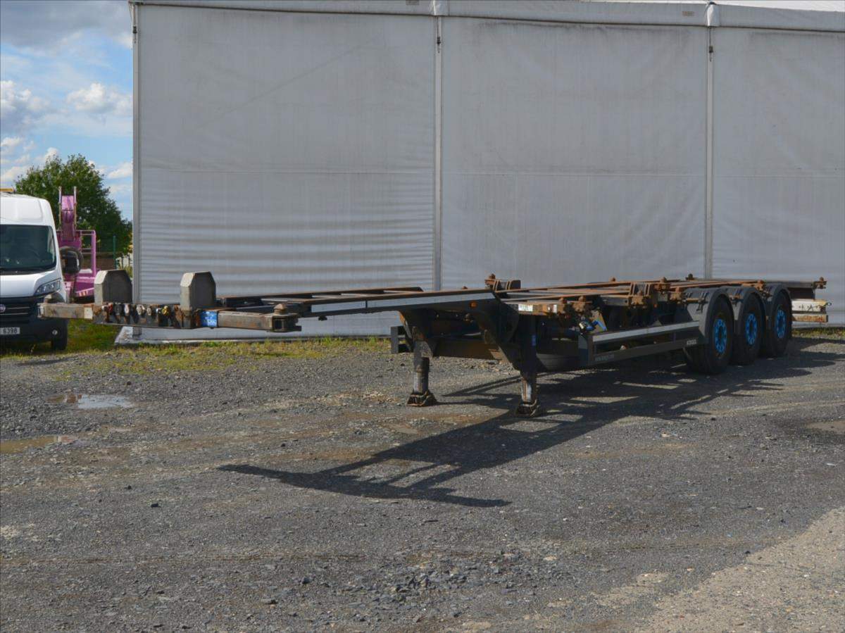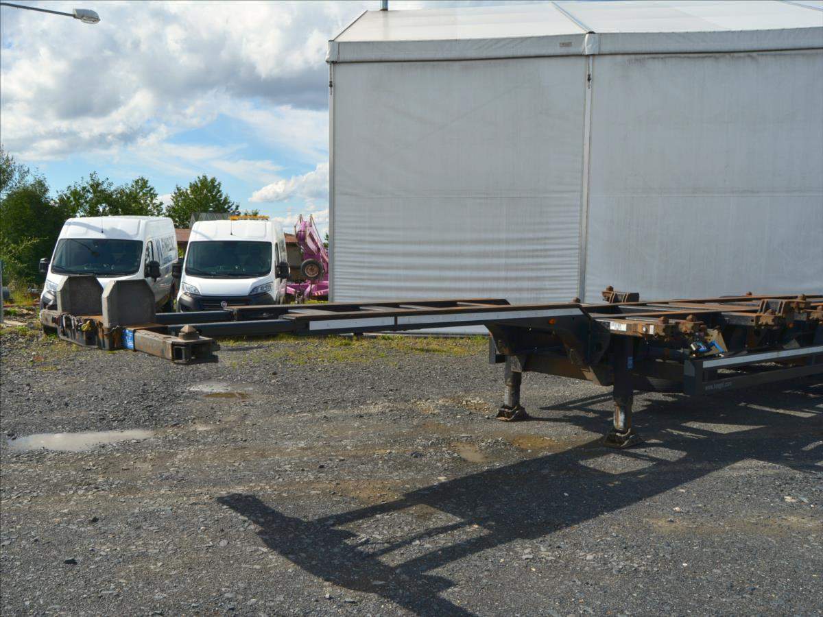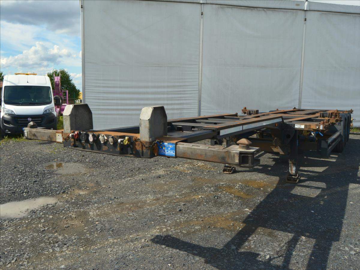 2xzvedací náprava; pro kontejnery; 20; 2x20; 30; 40; 45; návěs je roztahovací vzadu i vpředu; Zadní roztah vzduchem přední manuální.;
