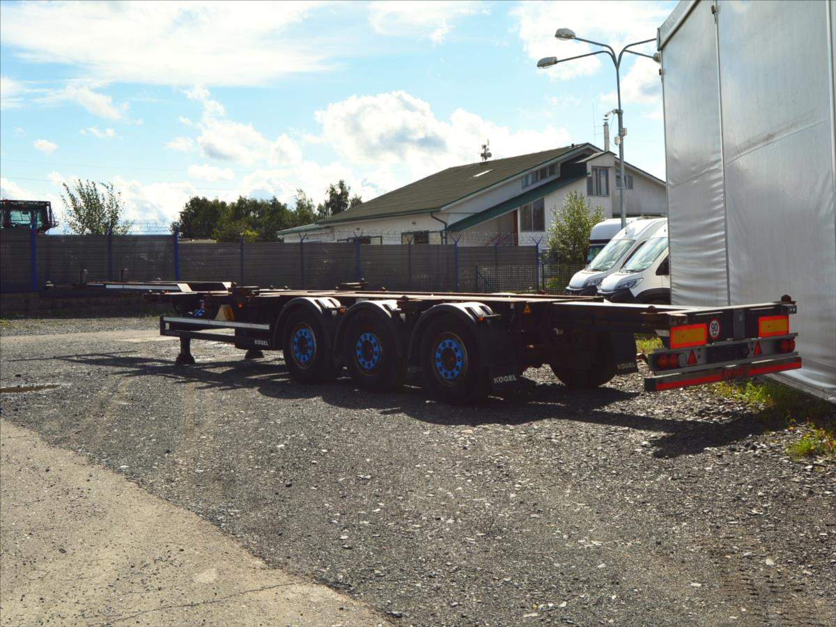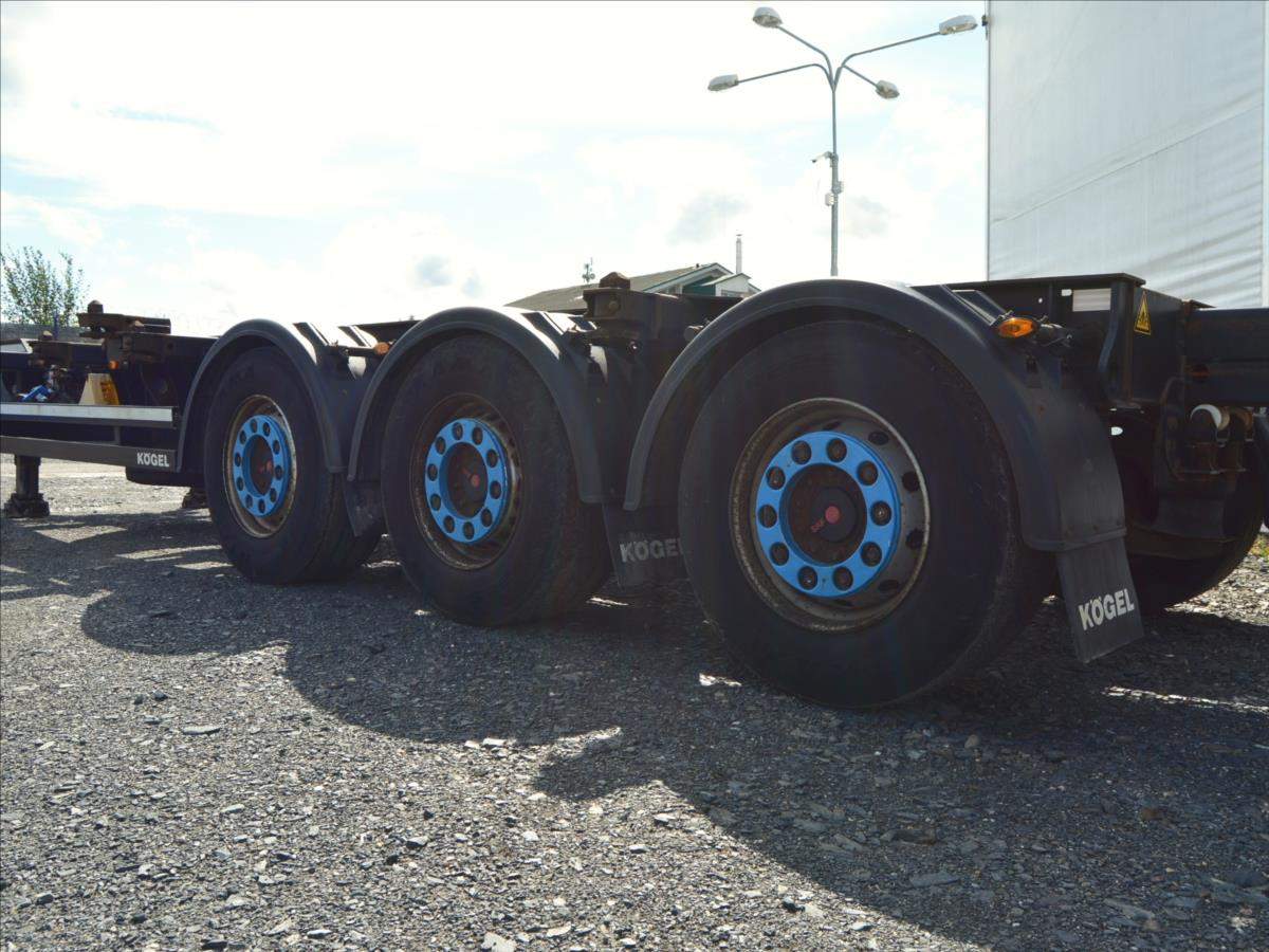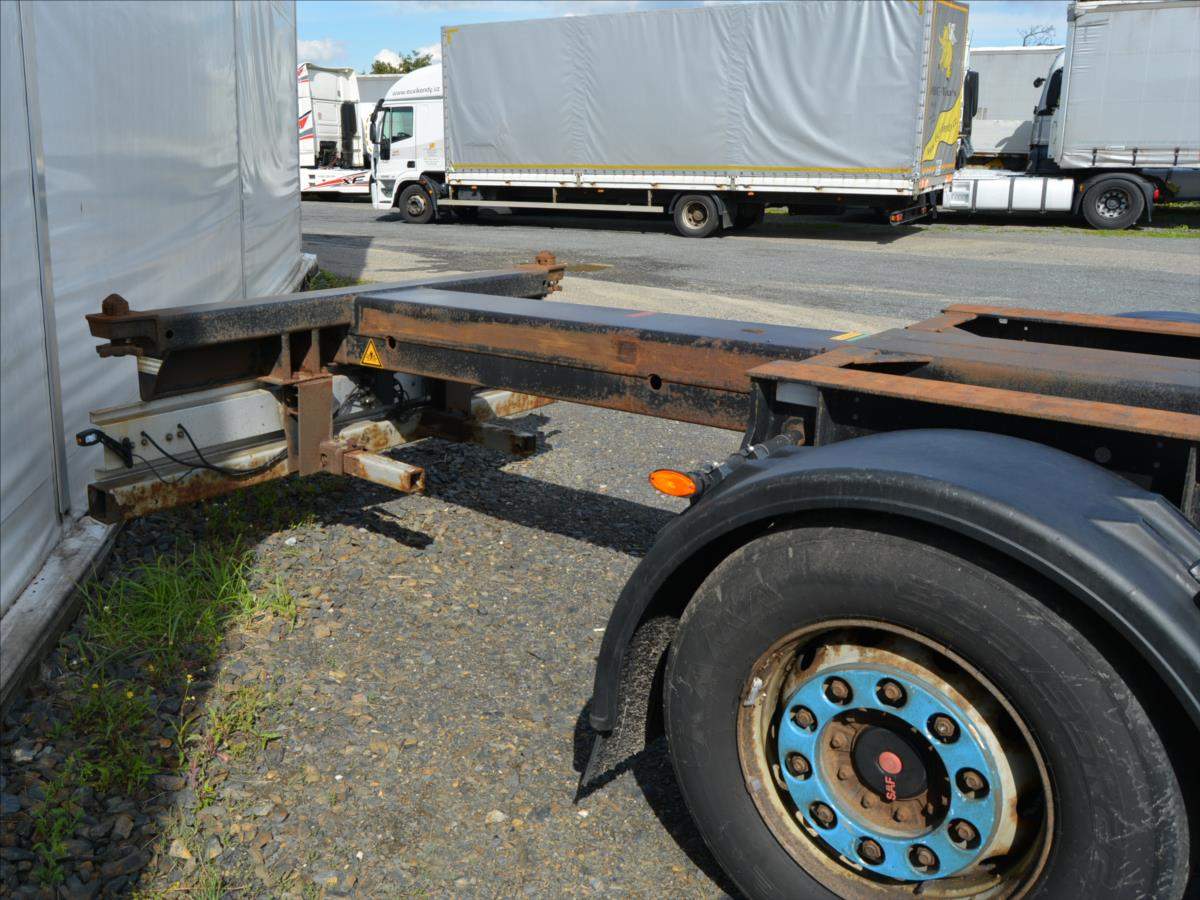 2xzvedací náprava; pro kontejnery; 20; 2x20; 30; 40; 45; návěs je roztahovací vzadu i vpředu; Zadní roztah vzduchem přední manuální.;