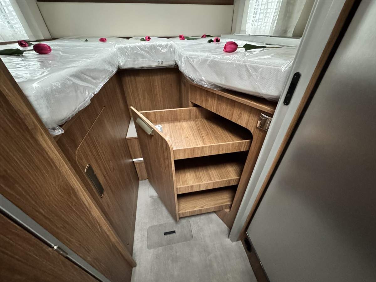 Půjčíme Vám levněji než v bance. Vaše stávající vozidlo rádi vykoupíme nebo vezmeme na protiúčet a lze jej použít i jako akontace na Vámi vybrané vozidlo. Vyřízení úvěru do 30 min. ----- K vozu je možno sjednat prodlouženou záruku až na 36 měsíců; Leasing možný; Možné financování vozidla.; Zadní podélné postele s úpravou na jednolůžko; el. spouštěcí postel; automatická lednice s mrazákem 12/230V/plyn; topení TRUMA COMBI; všechna okna se zatemněním a moskytiérou; dveřní moskytiéra; Multimediální systém 9'' Pioneer; Apple Car Play/Android Auto; Digitální přístrojová deska; Indukční dobíjení mobilního telefonu; zatemnění kabiny REMIS; dřevěný rošt v koupelně; izolovaná a vyhřívaná odpadní nádrž .... Celková hmotnost 3500kg ... VOZIDLO SKLADEM;