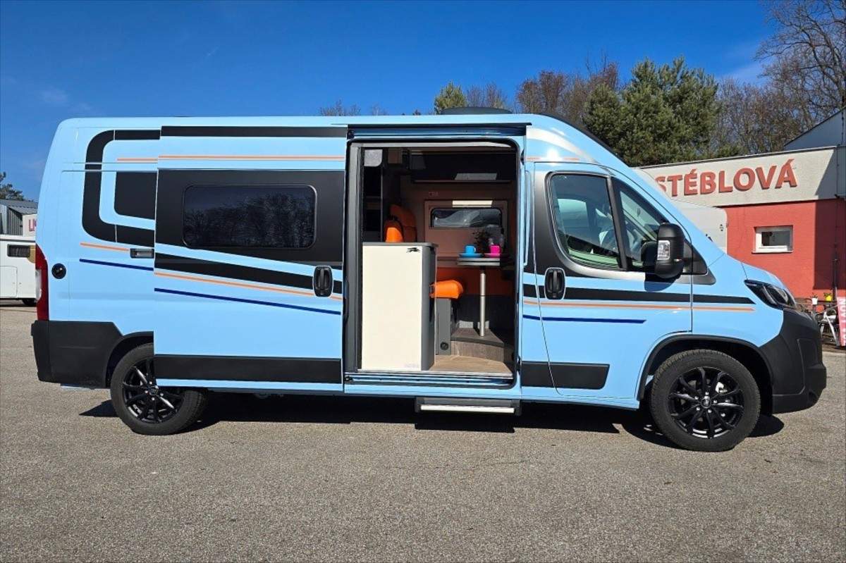 Půjčíme Vám levněji než v bance. Vaše stávající vozidlo rádi vykoupíme nebo vezmeme na protiúčet a lze jej použít i jako akontace na Vámi vybrané vozidlo. Vyřízení úvěru do 30 min. ----- K vozu je možno sjednat prodlouženou záruku až na 36 měsíců; Leasing možný; Možné financování vozidla.; SPECIÁLNÍ LIMITOVANÁ EDICE - Kosmo Supremo Azzurro Capri ..... Další výbava: 18' černá litá kola; oranžové čalounění NOTO; zadní příčná postel; kompresorová lednice s mrazákem; multimédium Pioneer 9'; indukční nabíjení mobilního telefonu; digitální přístrojová deska; elektronická ruční brda; izolovaná a vyhřívaná odpadní nádrž; bezpečnostní rámová okna; všechna okna se zatemněním a moskytiérou; dveřní moskytiéra; přední zatemnění REMIS; nástupní el. schůdek; naftové topení TRUMA Combi 6D; velká koupelna s otočným panelem; panoramatické střešní okno .... Celková délka: 599cm; výška: 265cm a šířka 215cm ... Celková hmotnost 3500kg; provozní: 2978kg .... VOZIDLO SKLADEM;
