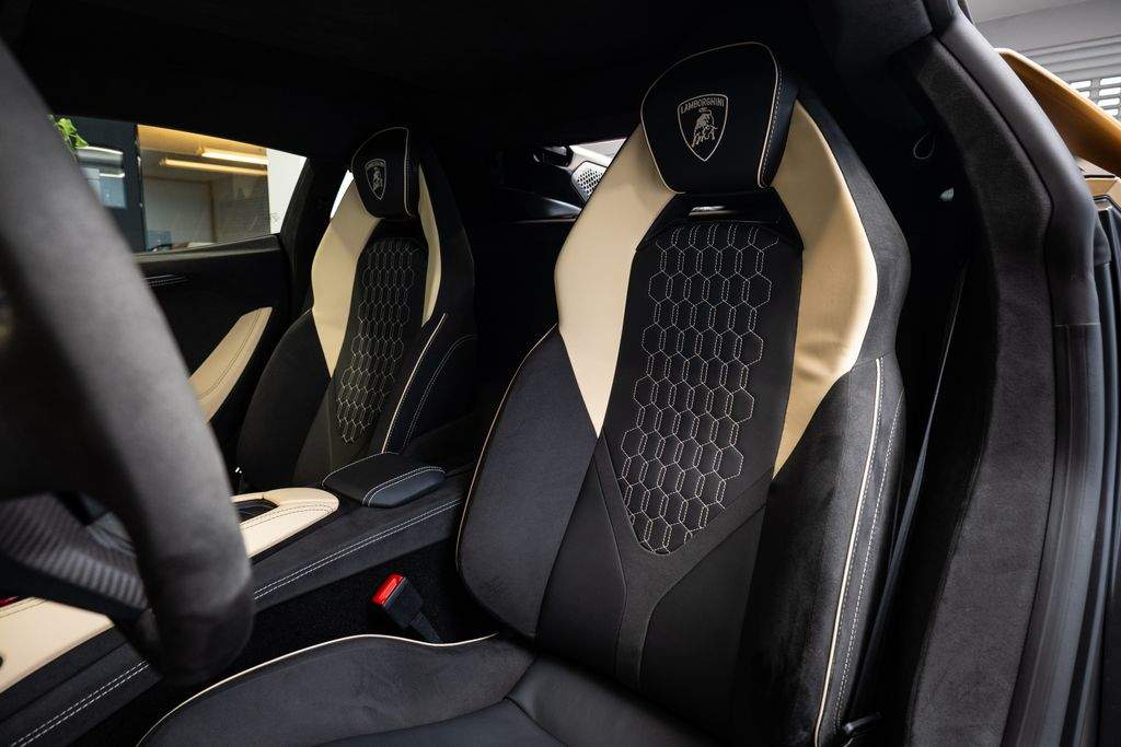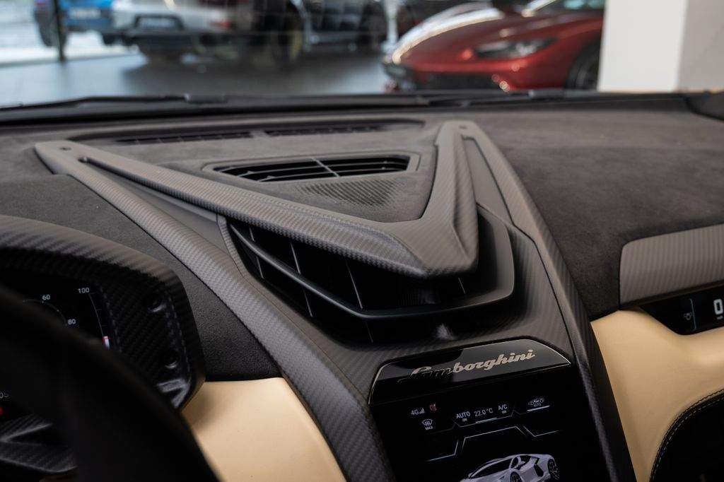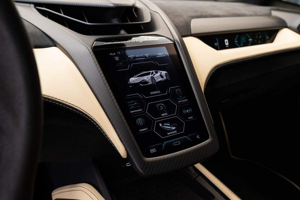 Číslo inzerce: ZL.xxx.0657; Full PPF ochrana; Vozidlo v záruce; Lak karoserie Oro Elios Matt; Kovaná kola Altanero 21'/22' v bronzovém lesklém provedení s diamantovým výbrusem; Koberečky s koženým lemem a dvojitým prošíváním; Volant v provedení Corsa Tex; Invertované (kontrastní obrácené) prošívání interiéru; Interiér v barvě Nero Ade; Čalounění v barvě Nero Ade; Vyšitý znak Lamborghini na opěrkách hlavy; Corsa Tex paket pro kontrastní části interiéru; Kontrastní interiérová barva Sabbia Nefertem; Kontrastní barevné provedení interiérových částí; Plně elektricky nastavitelná a vyhřívaná sedadla; Držáky nápojů; Rozhraní pro chytrý telefon a Connected Services; Zadní parkovací kamera;
