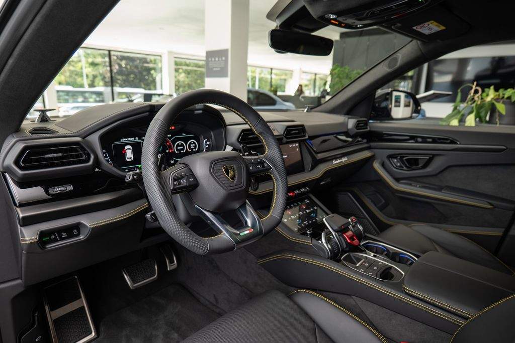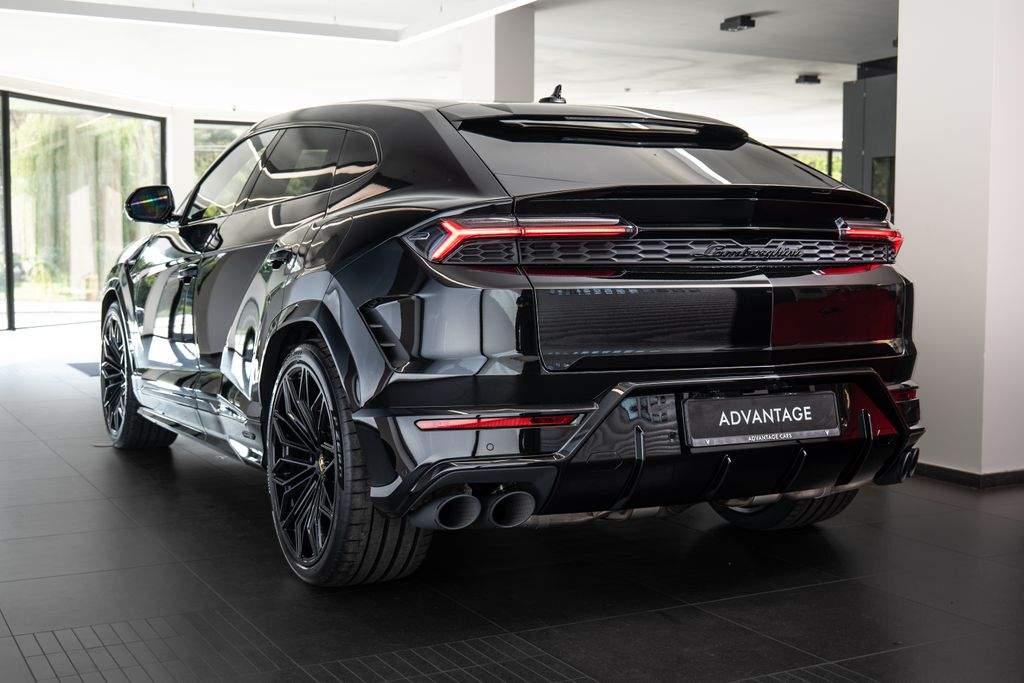 Číslo inzerce CE.xxx.SASE; Disky 23' Galanthus leskle černá; Žluté brzdové třmeny + karbonkeramické brzdy; Panoramatická střecha; Černé lesklé detaily exteriéru; Zadní difuzor v lesklé černé; Paket Style Full v barvě karoserie; Zadní logo Lamborghini ve vysoce lesklé černé; Koncovky výfuku matně černé; Jednobarevný Nero Ade kožený interiér s kontrastním prošíváním Giallo Taurus; Přední sedadla plně elektrická s ventilací a masáží; Zadní sedadla vyhřívaná; Sedadla v kůži s paketem Performante; Vyšívaný znak Lamborghini na opěrkách hlavy Giallo Taurus; Bezpečnostní pásy Giallo Taurus; Koberce a lemování v základní barvě; Volant v perforované kůži s prošíváním do X; Ambientní osvětlení; Černý eloxovaný hliník v interiéru; Dekory Piano Black; 3D audiosystém Bang & Olufsen; Lamborghini ANIMA Off-road mód 6 režimů; DAB rádio; Head-Up Display; Parkovací asistenční paket s dálkovým parkováním; Stěrače s integrovanými tryskami; Privacy Glass akustická a tepelně izolovaná; Přední okno s tepelně odraznou vrstvou; Kolejnice a fixační sada pro zavazadla;