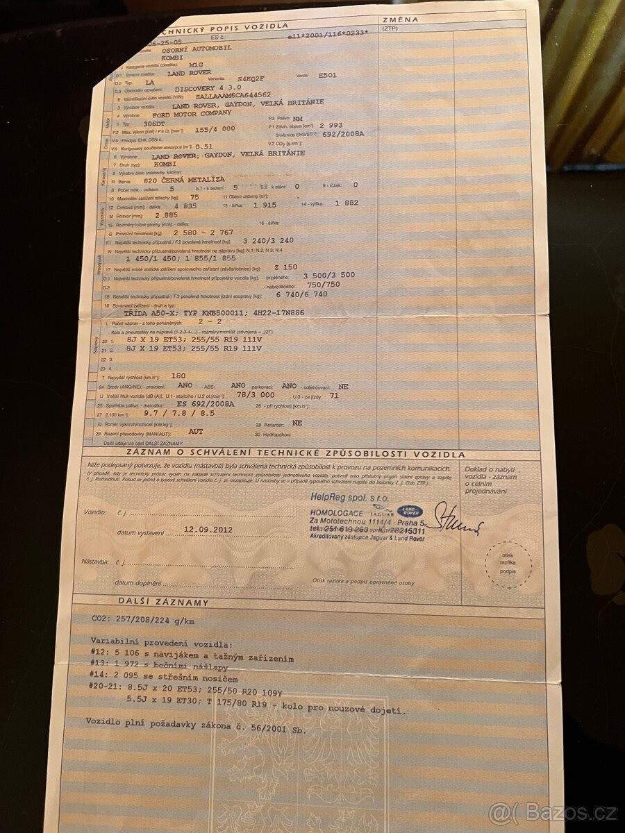 První majitel; TEL: 602287547 OKR: BEROUN Prodám LR D 4; diessel 3l; najeto 335000km; rok výroby 2012; 1.majitel; vyhřívaná přední sedadla; střešní okno; závěsné zařízení čep i koule; interier v černé kůži; TP do 1/2027; pneu univerzální 90%.;