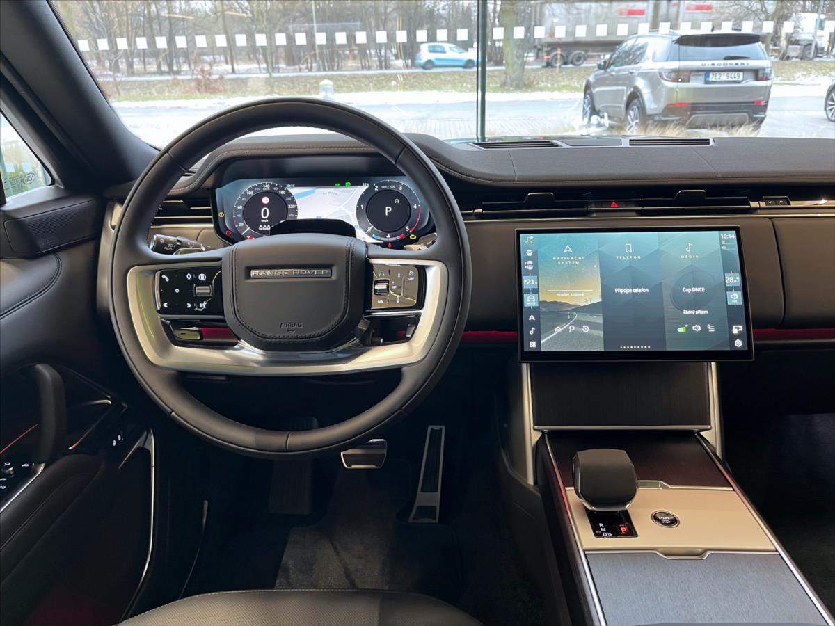 První majitel; Nový neregistrovaný vůz; ihned k odběru. Původní cena 4.224.245 Kč vč. DPH. Metalický lak Santorini Black; 22' al. kola Gloss Black (Style 1073); čalounění semianilinovou kůží Ebony; dekor obložení Natural Black Birch; audiosystem Meridian Surround; Towing Pack; Comfort Pack; Shadow Exterior Pack;