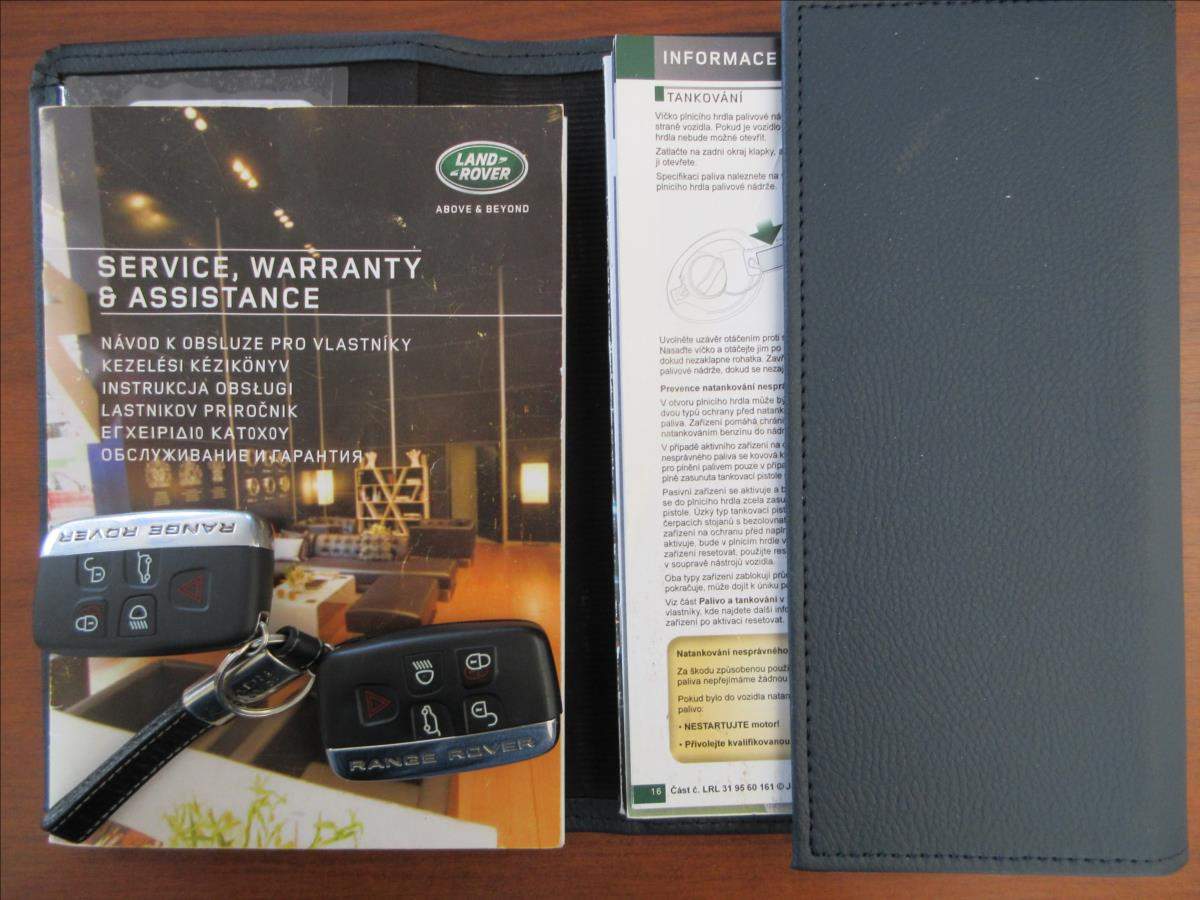 První majitel; Vozidlo s motorem 2.0 TD4 132 Kw s automatickou převodovkou s možností řazení pod volantem; zakoupené jako nové po 1. majiteli u autorizovaného prodejce Land Rover Dajbych; s.r.o. Plzeň a pravidelně servisované. Vozidlo plně pojízdné a funkční; možno odjet po vlastní ose; občas se ozve zaklepnutí z vrchní části motoru; autorizovaným servisem nebyla závada přesněji specifikována; ale zřejmě se jedná o hydroštel; nebo vstřik. K zjištění přesné závady by byla nutná demontáž vrchní části motoru. Tažné zařízení na 2000 Kg. zapsané v TP.;