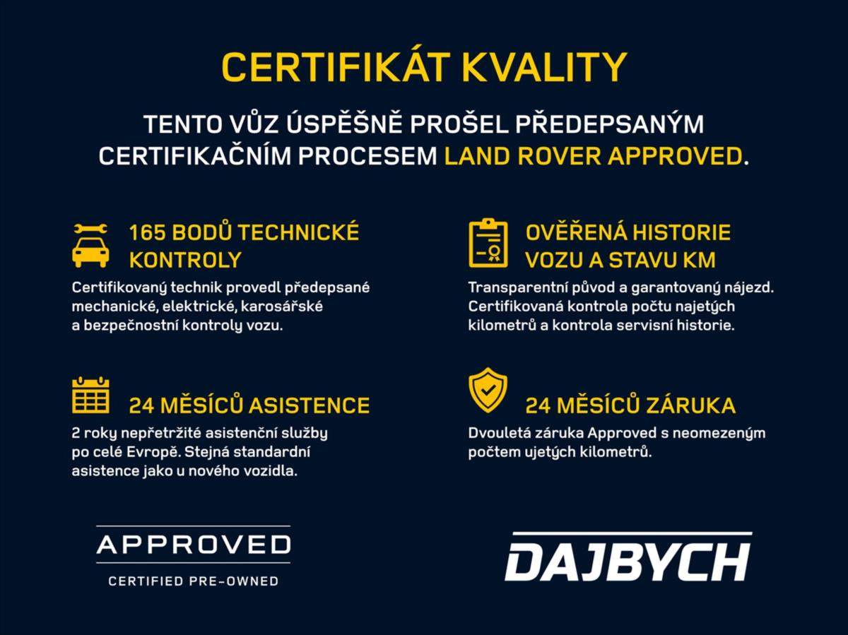 První majitel; Úvěr možný; APPROVED; VOLAT PŘEDEM; VOZIDLO SE NENACHÁZÍ NA PRODEJNÍ PLOŠE!! PO 1. MAJITELI; MOŽNÝ ODPOČET DPH; SERVISNÍ HISTORIE; PO SERVISU A PO KONTROLE. Jsme AUTORIZOVANÝ PRODEJCE vozů LAND ROVER; JAGUAR a MAZDA. Vozidlo se nachází na provozovně PRAHA; Ke Kotlářce (mezi čp 4 a 6); Praha 5. Vykoupíme Váš stávající vůz a všechny formality zařídíme za Vás. GARANCE původu a km. Nejedná se o návrh na uzavření smlouvy (nabídku) dle § 1731 zákona č. 89/2012 Sb.; občanský zákoník; ale o nezávaznou nabídku. V případě zájmu volejte nebo piště na uvedené kontakty pod tímto inzerátem. Možnost prodloužení záruky.;
