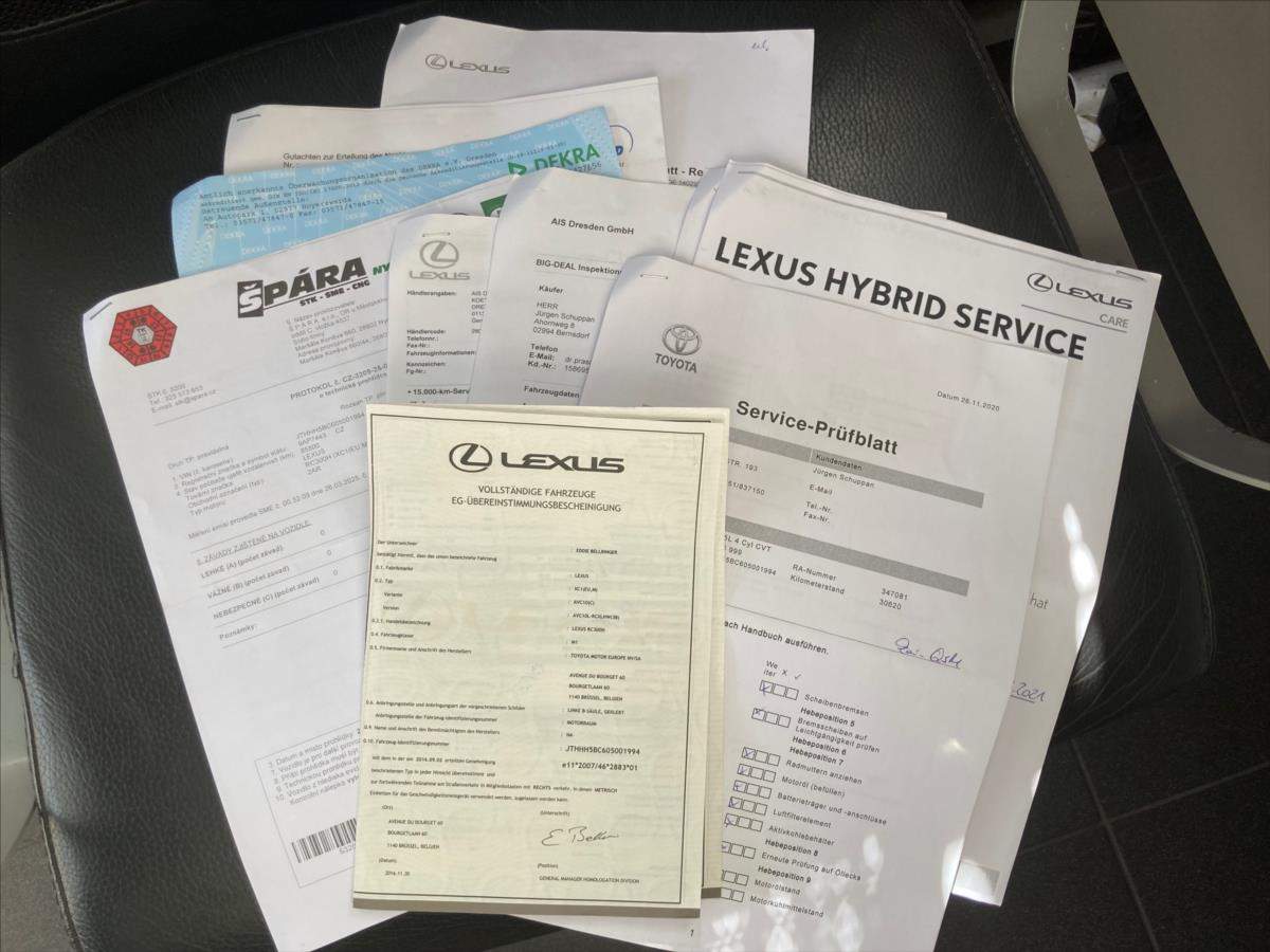 Druhý majitel; Úvěr možný; RC300h HYBRID F SPORT 133KW*2.MAJITEL*NENÍ ODPOČET DPH*PRAVIDELNĚ SERVISOVANÝ*BÍLÁ METALÍZA*PANORAMA*KŮŽE*AUTOMAT*LED*XENON*AUT.KLIMATIZACE*NAVIGACE*ALU*VELMI HEZKÝ A ZACHOVALÝ VŮZ*SERVISNÍ KNIHA+MOŽNOST CEBIA*PRAVIDELNĚ SERVISOVÁNO*MOŽNOST PROTIÚČTU*VIN pro vaši kontrolu:JTHHH5BC605001994*MOŽNOST ZÁRUKY NA OJETÉ VOZY - až na36 měsíců - DEFEND CAR PROTECT*Samozřejmostí je možnost prohlídky vaším mechanikem v místním autoservisu; popřípadě v servisu příslušné značky po předchozí dohodě.;