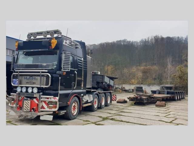tahač návěsů i přívěsů 8x4 MAN TGA 41.660 BBS; se silnou hydraulikou; 250/48t souprava; rok 2005; 1 majitel; najeto orig. 411 742 km; motor 485 kW / Eur3 (1999/96A); automatická převodovka; pohon 8x4; 2x spaní; tažné zařízení; 41/32t; exkluzivní elegantní retro interiér (Pioneer audio); chromové kryty; mřížky a doplňky; v 2009 tkm 104; MOŽNO PLUS v soupravě se speciál 2006 podvalem 90/75t Nooteboom; 3-dílný - viz fota; ID 6302_J+S; ústecký kraj - ca 50km od nás; Volejte (+420) 608 244 780 nebo 732 712 973 od Po-Pá / 9-17 h; nebo pište.;;