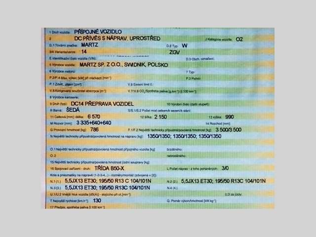 ZÁNOVNÍ přívěs 3-osý přepravník plaťák 3.5t; (PL) MARTZ - W14 ZGV; rok 2022; STK do 11 / 2026; nevyužitý - nevhodná koupě; stav 99.9% NOVÉHO; ložná plocha 5 x 2.15 m; vlastní hmotnost 786 kg; celková hmotnost 3.500 kg; užitečná nosnost 2.714 kg; naviják; nápravy ALKO / 3x 1 350 kg; nájezdová brzda ALKO; nájezdy v rámu schované; pneu 195/50 R13; Cena bez DPH. Pro neplátce dohoda.; Volejte 608 244 776 od Po-Pá/9-17 hod. nebo pište;;