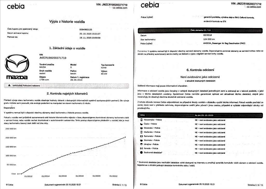JMZCR198200371719 prověřit vozidlo online
