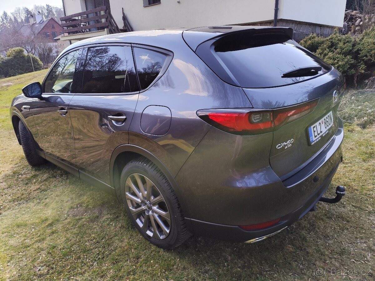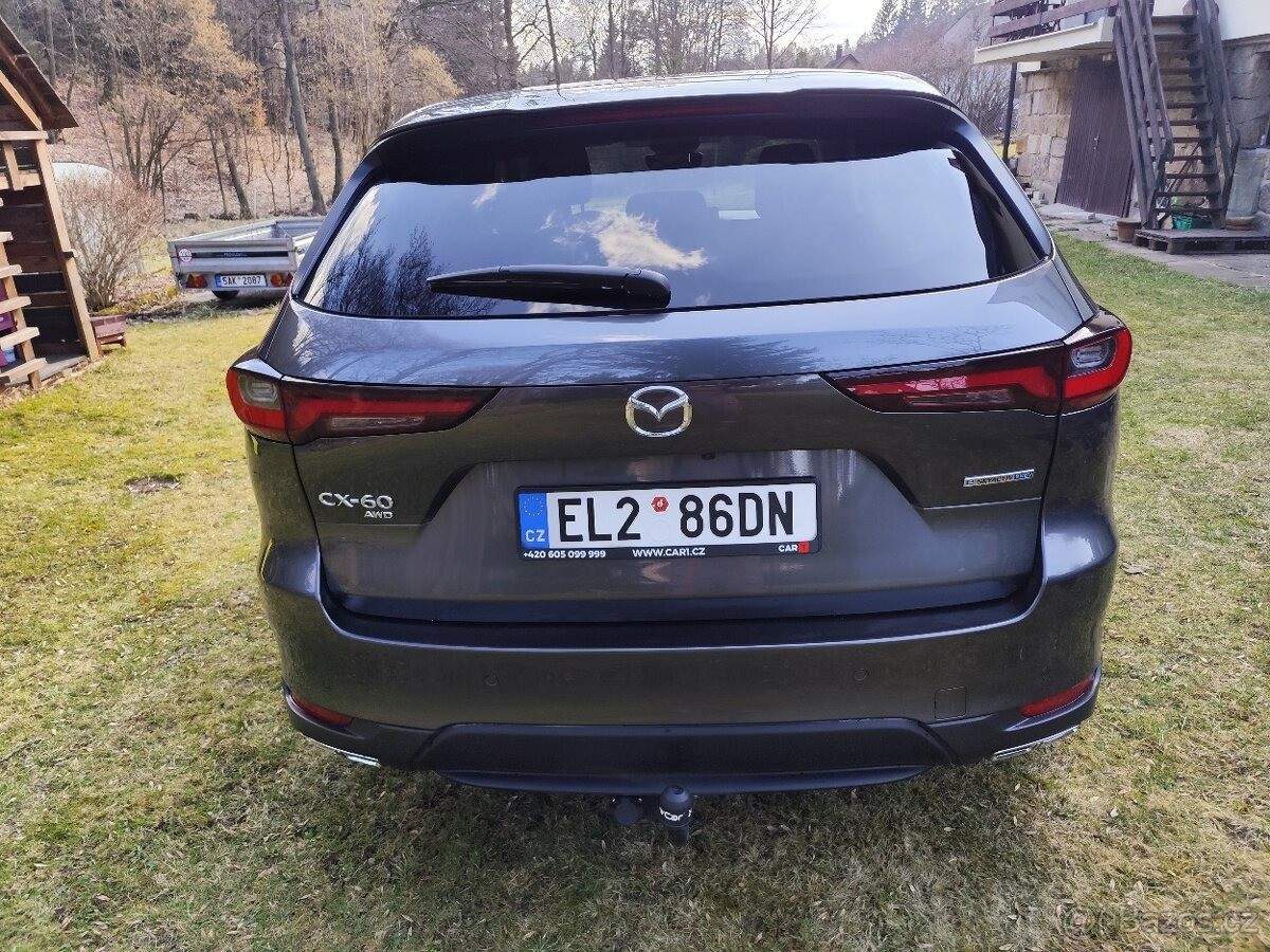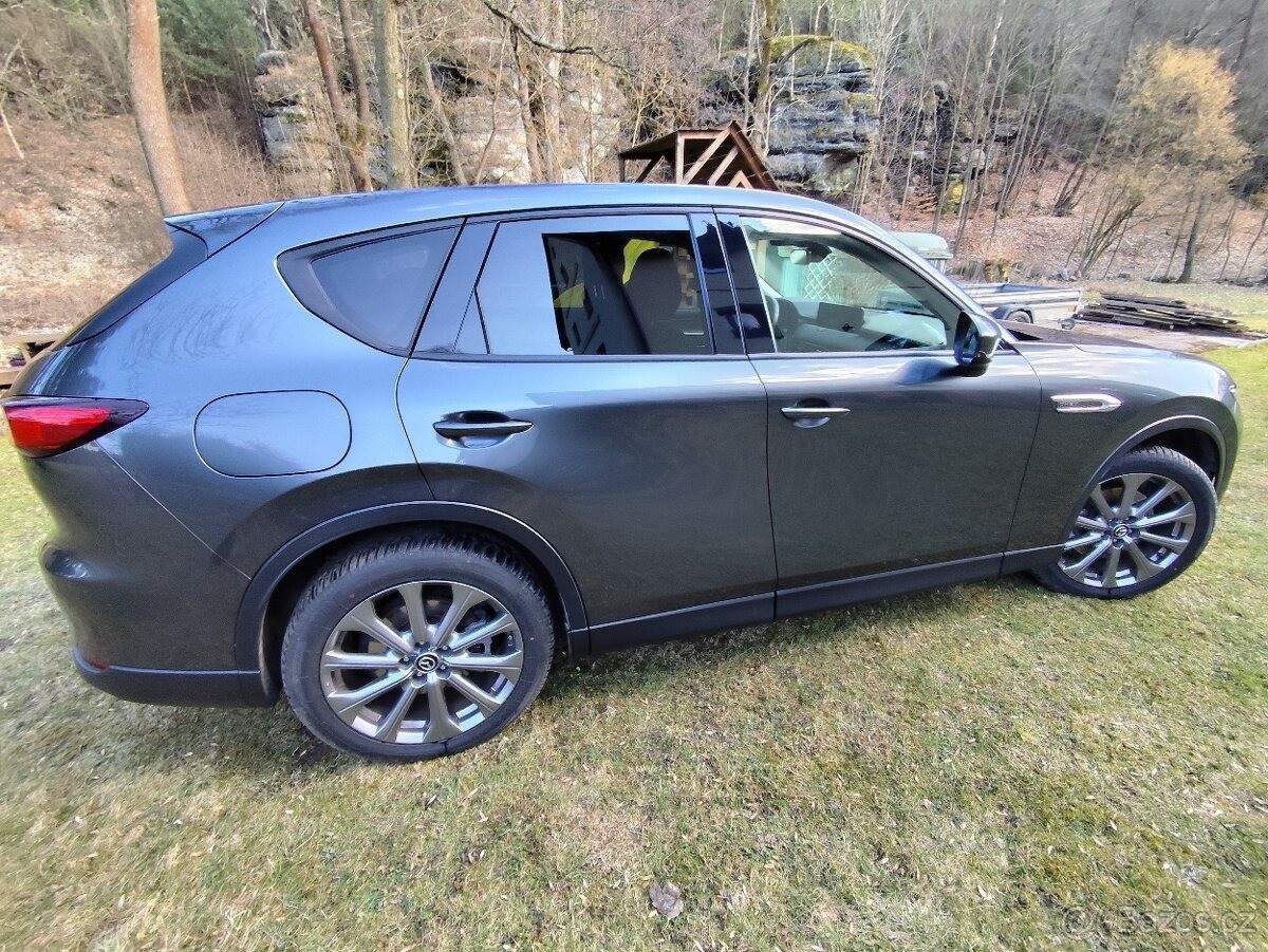 TEL: 777217565 OKR: PRAHA Prodám Mazdu CX-60 s motorem 2.5 plug in Hybrid 4x4; Stav tachometru: 10000 Km; tažné zařízení K vozu jsou všechny originální kabely pro nabíjení Možný odpočet DPH; cena bez DPH=´784297; -Kč Letní + zimní pneumatiky Značka: Mazda Model: CX-60 První majitel Servisní kniha: ANO V provozu: 01/2024 Stav tachometru: 10000 Km Palivo: plug in Hybrid Objem motoru: 2; 488 ccm Výkon: 241 kW / 328 HP Dveří / sedadel: 5 / 5 Barva: tmavě šedá Tažné zařízení Adaptivní tempomat s funkcí asistenta v zácpě (MRCC) Asistent pro udržení v jízdním pruhu s podporou řízení Asistent pro změnu jízdního pruhu Plus (Hlídání mrtvého úhlu) Městský nouzový brzdový asistent (SCBS/SBS) Rozpoznávání dopravních značek (TSR) Kamery 360 Head-up displej Bose prémiové audio Vyhřívání sedadel Vyhřívání volantu Automatická klimatizace Bezklíčový přístupový systém Parkovací senzory + kamera vpředu a vzadu Infotainment systém Mazda Connect Paket Premium Comfort Volba jízdního režimu My-Drive Záruka Mazda do 01/2030;