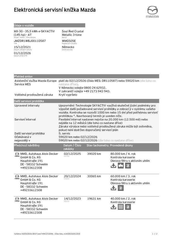 JMZDR1WBJ00110587 prověřit vozidlo online