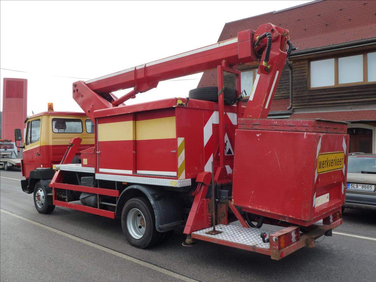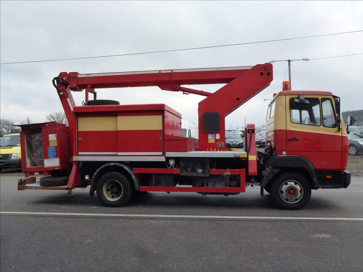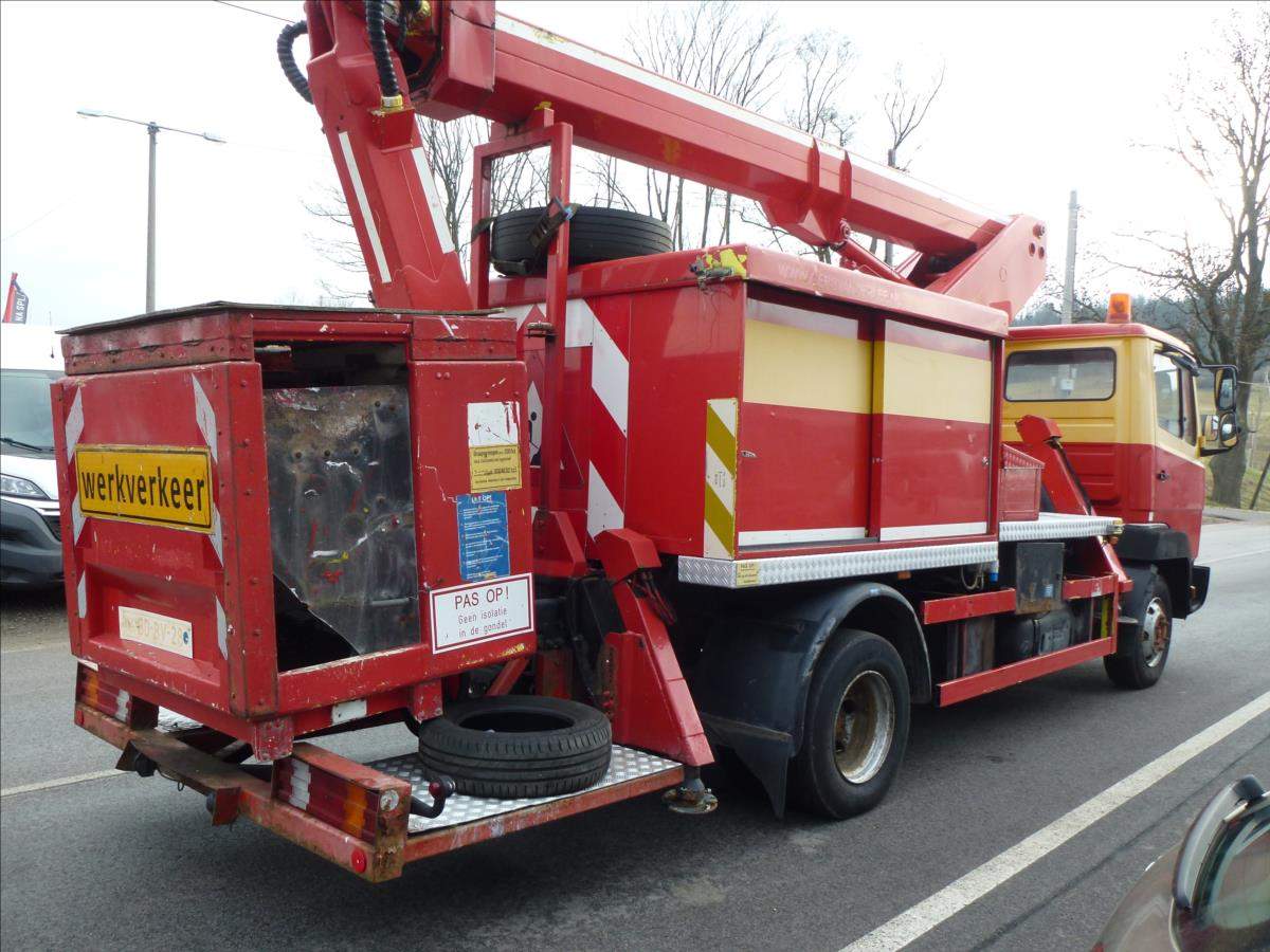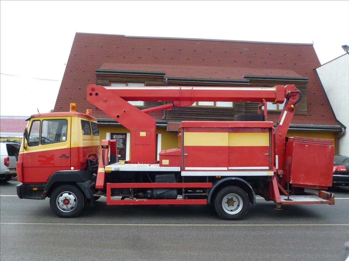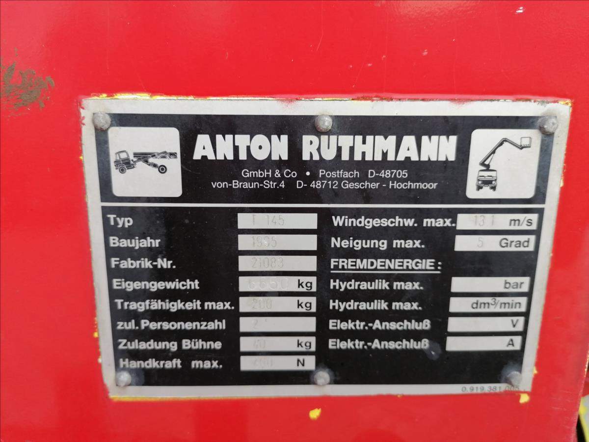Nyní akční sleva 20%!!!; První majitel; Pracovní plošina Ruthmann T 145 instalovaná na Mercedes Benz 814 D. 14 m Bj 1995 Pracovní plošina pro 2 osoby / 200 kg Konstrukční výška 3; 31 m Výška plošiny 14; 50 m;