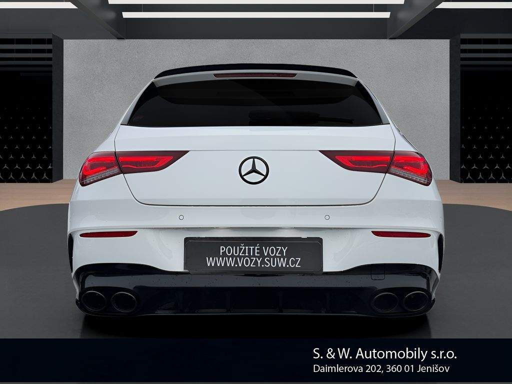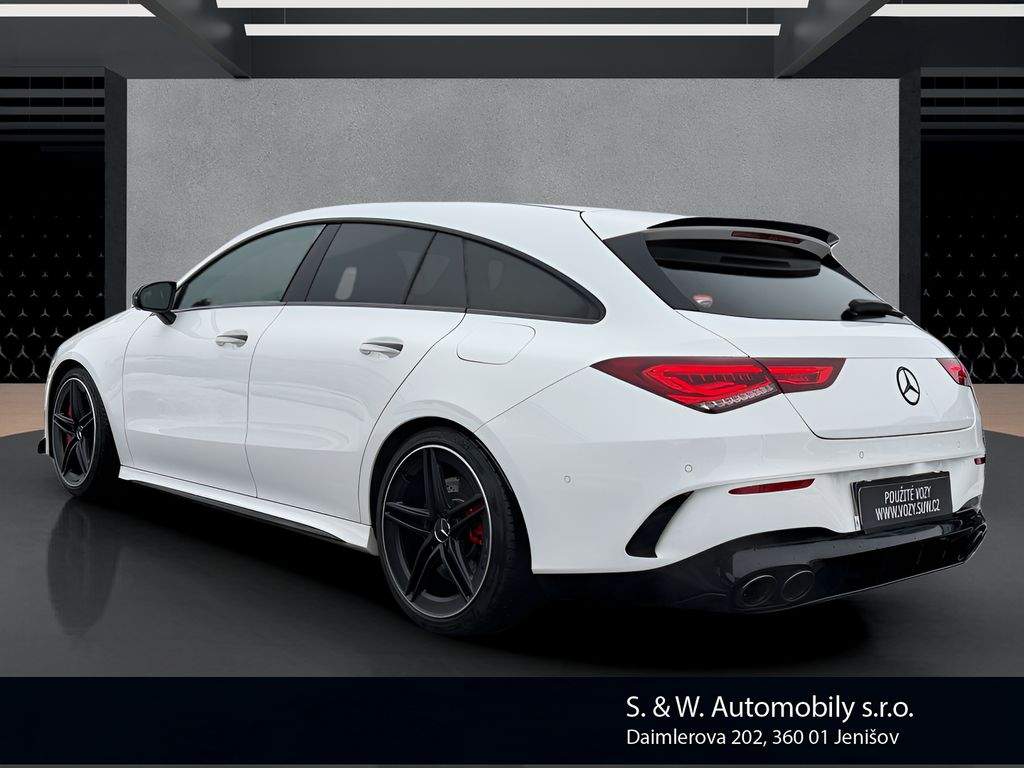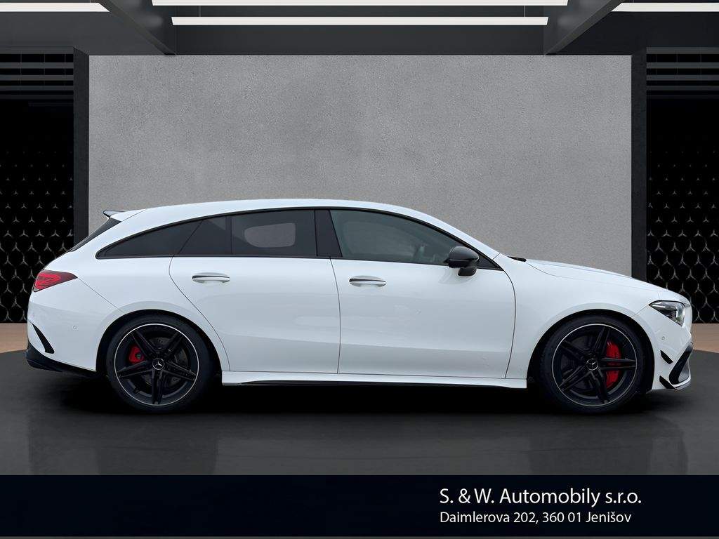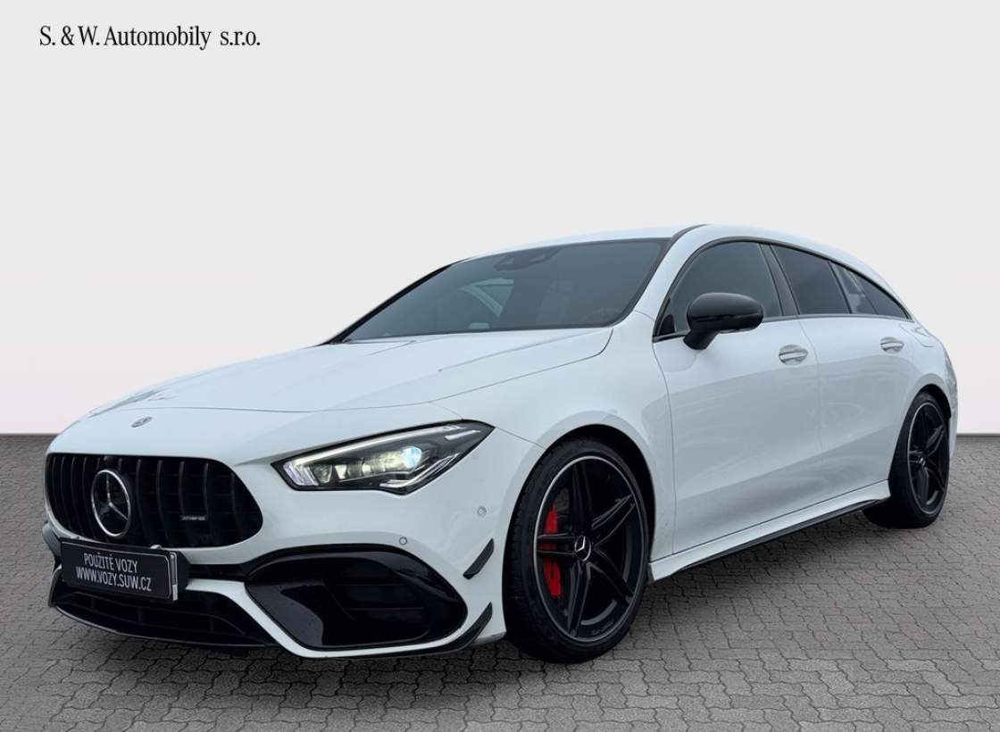 Nabízíme k prodeji Mercedes-Benz CLA 45 AMG Shooting Brake ve velmi dobrém stavu. Vůz prodáváme jako autorizovaný dealer – garantovaný původ; prověřená historie a profesionální zázemí servisu. Jedná se o sportovní kombi s benzinovým motorem o výkonu 310 kW (421 k); automatickou převodovkou a pohonem všech kol 4x4; s první registrací dne 28. 6. 2021. CLA 45 AMG Shooting Brake nabízí výjimečnou kombinaci praktické karoserie a ryze sportovního projevu divize AMG – skvělou dynamiku; přesné jízdní vlastnosti a každodenní použitelnost. Vůz je navíc doplněn o atraktivní úpravy v podobě sportovního sání a sportovního výfukového systému značky Eventuri; které podtrhují jeho charakter a přinášejí výraznější zvukový i jízdní zážitek. V případě zájmu rádi zašleme veškeré dostupné informace k historii a stavu vozu. Samozřejmostí je možnost prohlídky vozu u nás a zkušební jízdy. Zajistíme také financování; případně nabízíme možnost protiúčtu za váš stávající vůz. Doporučujeme domluvit termín prohlídky předem; aby byl vůz připraven k prezentaci.;