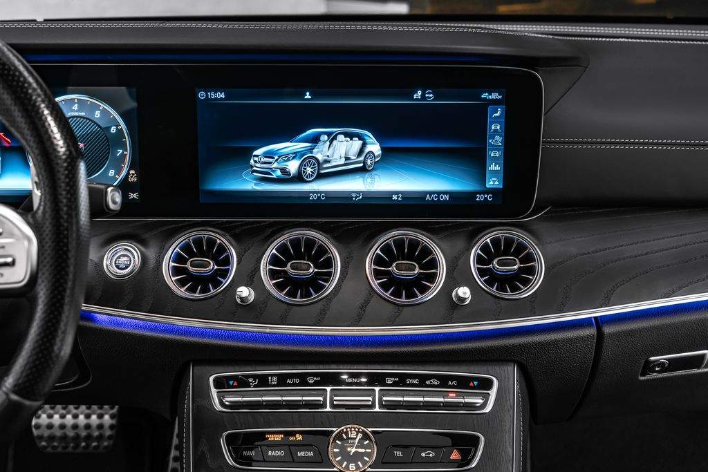 Úložný balíček; audionavigační systém COMAND Online; DAB tuner (digitální rádiový příjem); balíček asistenčních systémů Plus; informační systém řidiče (AMG Performance Media); Vozidlo bez označení modelu; Vnitřní obložení: Jasanové dřevo; černé; Palivová nádrž: 80 litrů (zvětšená kapacita; objem 2); Paměťový balíček; Metalický lak; Středová konzola v jasanovém dřevě; černé; Multibeam LED světlomety; Noční balíček (AMG); Elektrické panoramatické posuvné střešní okno (plně prosklená střecha); Parkovací balíček s 360° kamerou; Sada na opravu pneumatik (Tirefit); Vyhřívaný ostřikovač čelního skla; Přední sedadla: klimatizace; Integrace chytrého telefonu; Sportovní výfukový systém (AMG Performance); Systém prostorového ozvučení Burmester; Analogové hodiny. Termín prohlídky si prosím předem domluvte. Děkujeme.;