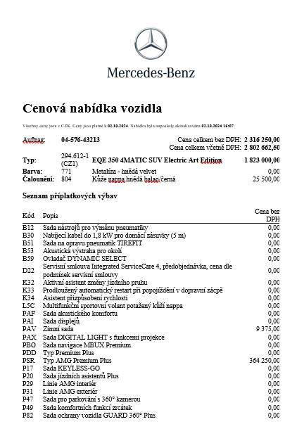 Electric Art Edition = sada výbavy Advance zdarma; 2 roky nabíjení zdarma s kartou MercedesMe Charge; servisní smlouva na 6 let/90.000 km zdarma. Podrobná specifikace vozidla ve fotkách. Kontakt + 420 603 527 395; +420 602 332 332;