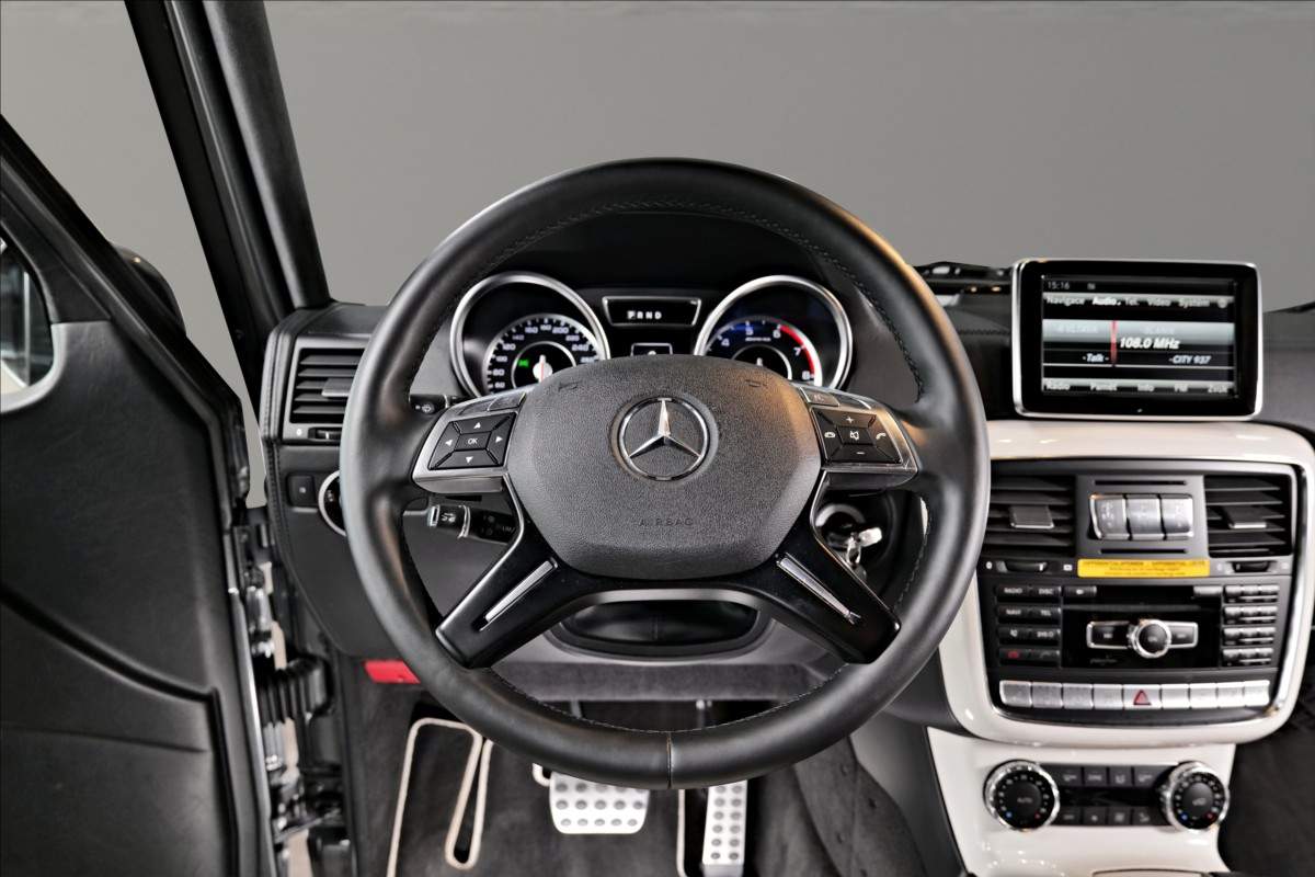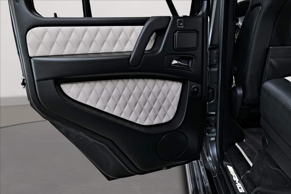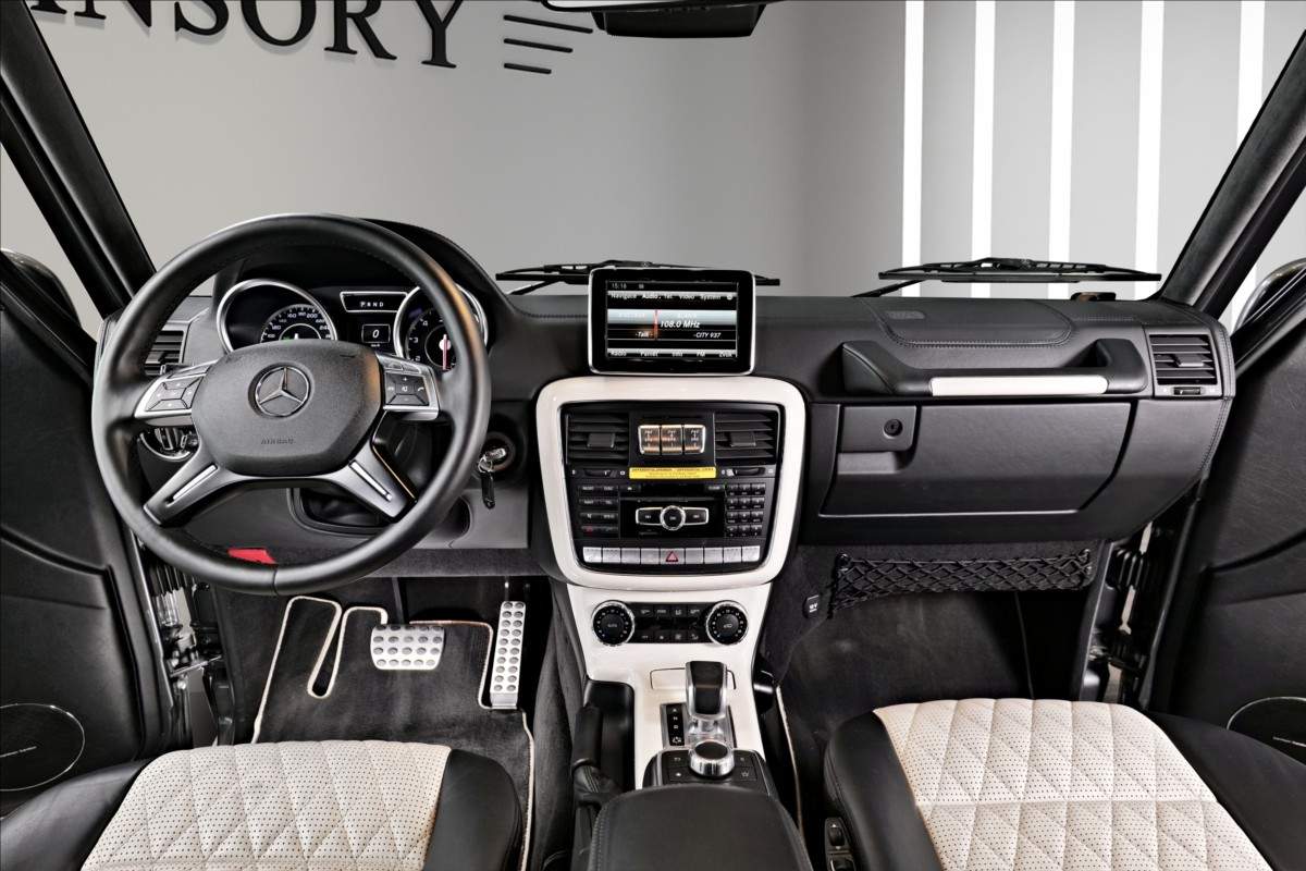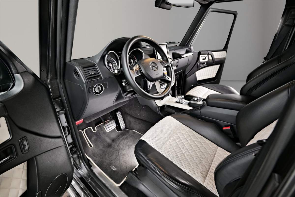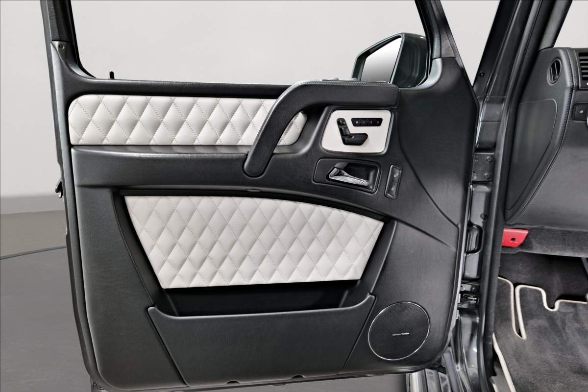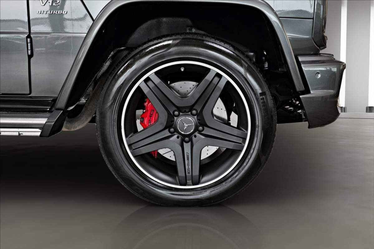 Dobrý den; máme na prodej velmi pěkný Mercedes Benz G 65 AMG. Vůz má 20 palcová kovaná AMG kola; lakovaná v černé matné barvě; červené lakované brzdové třmeny AMG. Mezi další prvky výbavy patří např: černo-bílý kožený interiér; na sedačkách štítek AMG; černé koberečky s bílými okraji; elektrické střešní okno; zadní LCD displeje; paket komfortních sedadel; systém Homelink (otevírání garážových vrat); sound systém Harman&Kardon...;