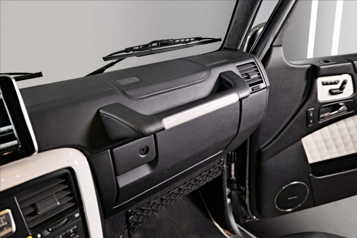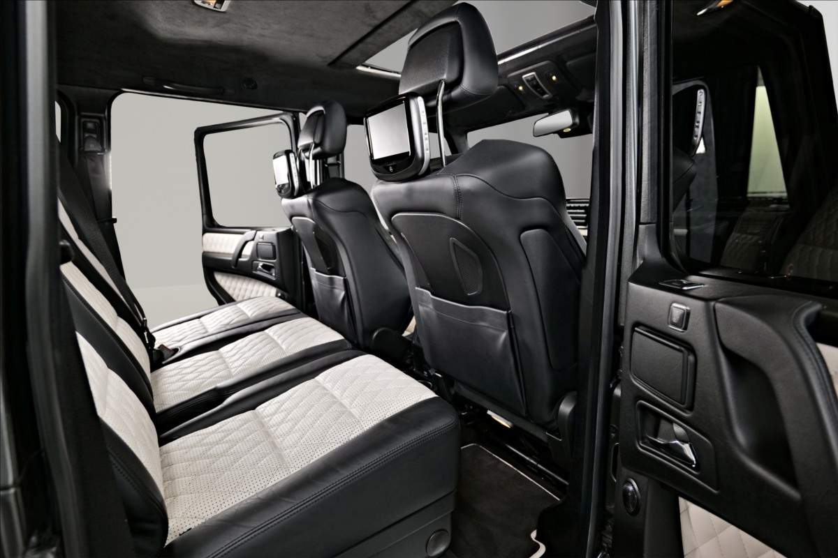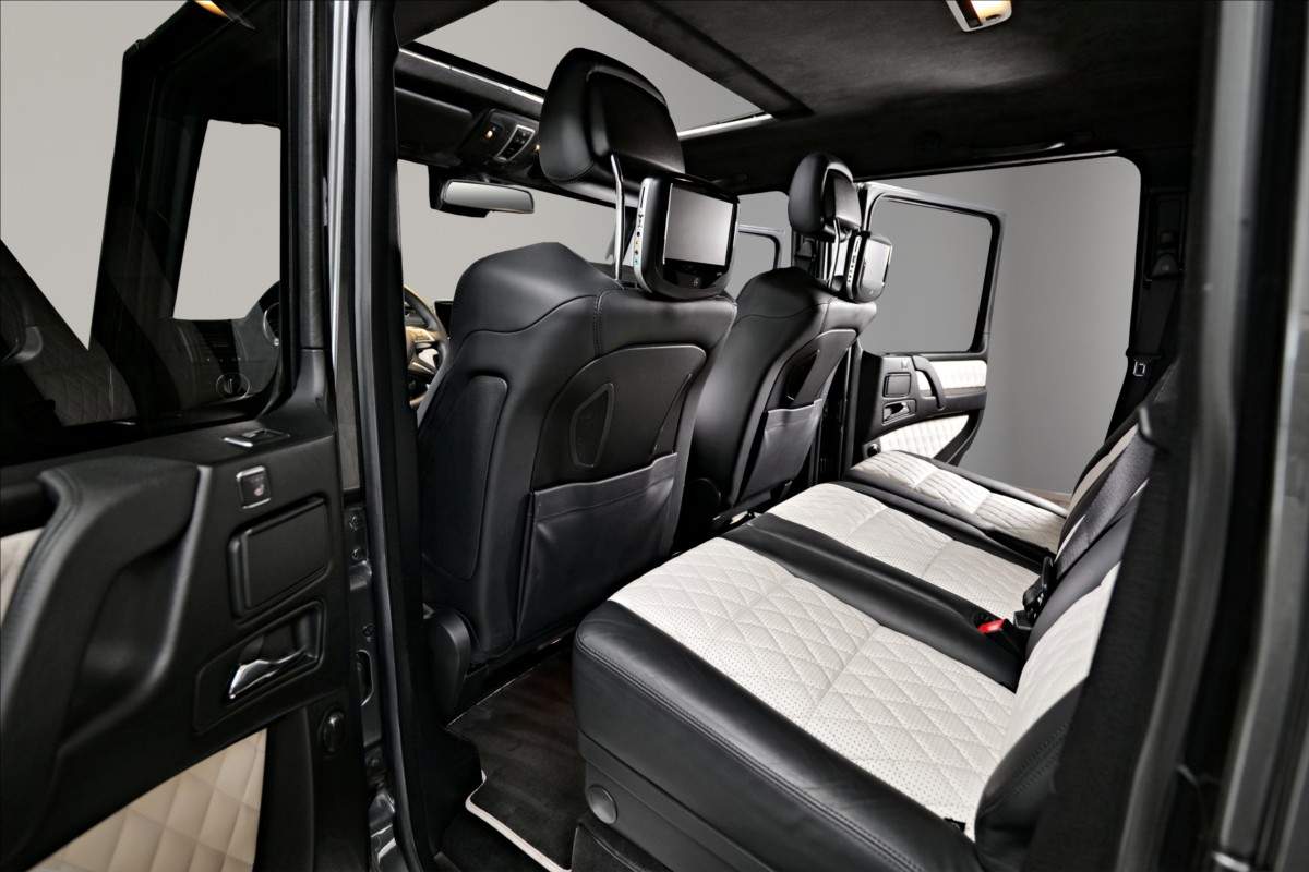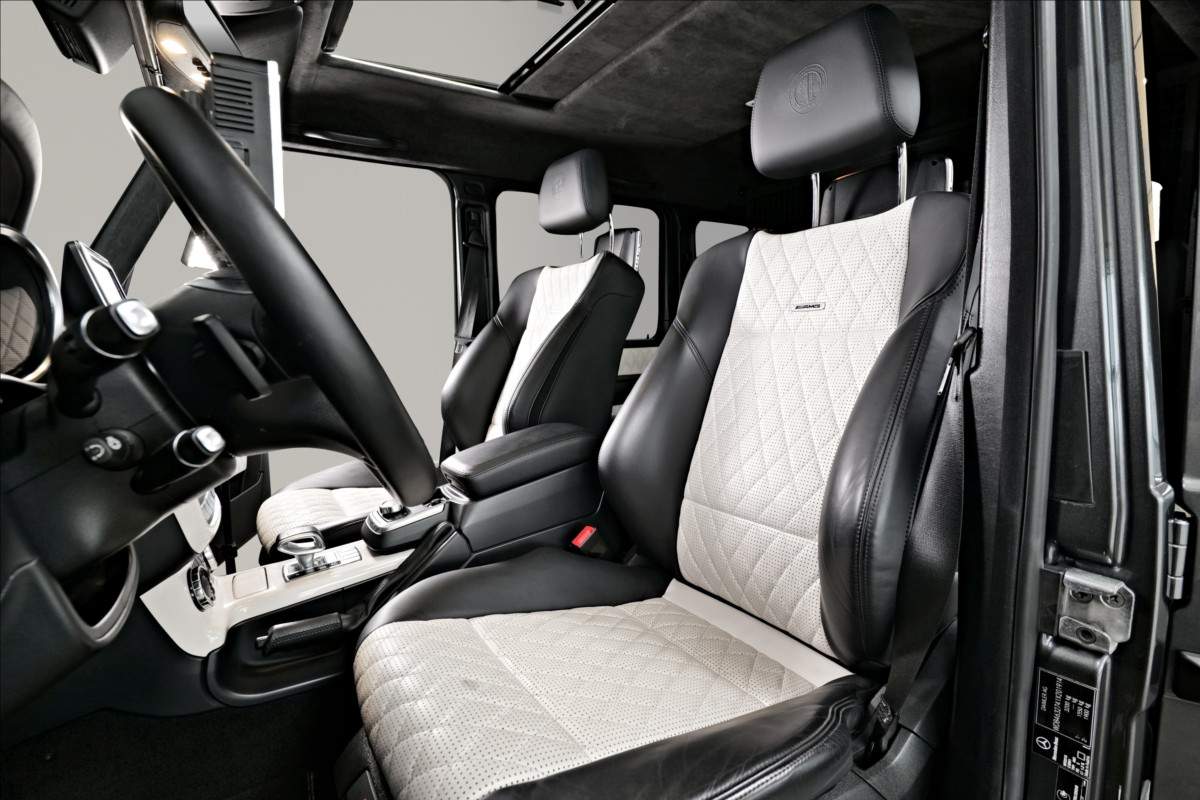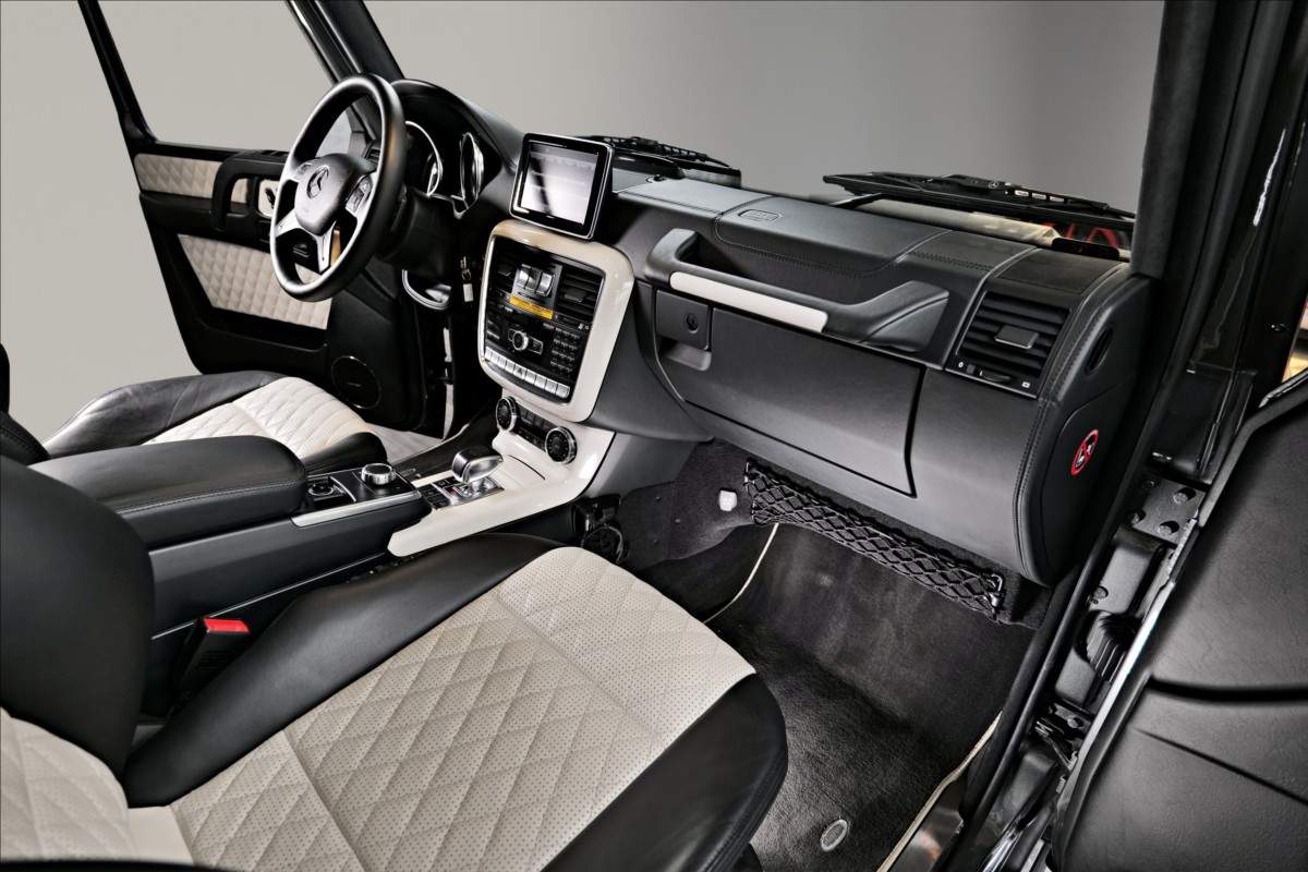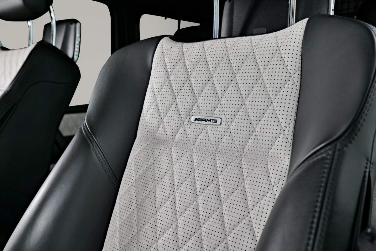 Dobrý den; máme na prodej velmi pěkný Mercedes Benz G 65 AMG. Vůz má 20 palcová kovaná AMG kola; lakovaná v černé matné barvě; červené lakované brzdové třmeny AMG. Mezi další prvky výbavy patří např: černo-bílý kožený interiér; na sedačkách štítek AMG; černé koberečky s bílými okraji; elektrické střešní okno; zadní LCD displeje; paket komfortních sedadel; systém Homelink (otevírání garážových vrat); sound systém Harman&Kardon...;