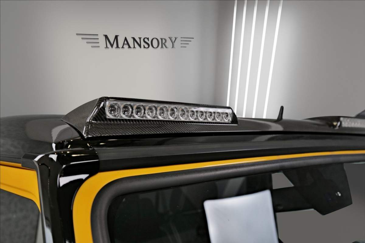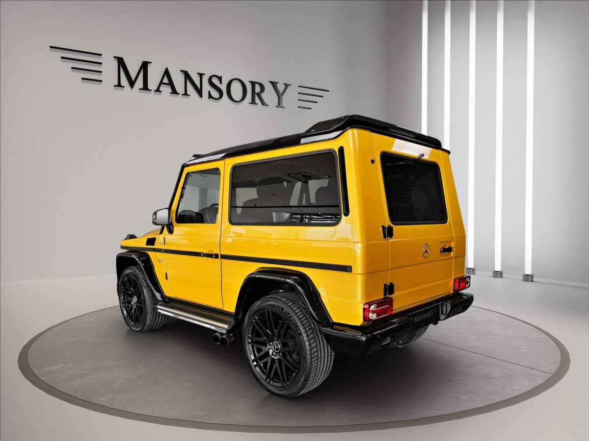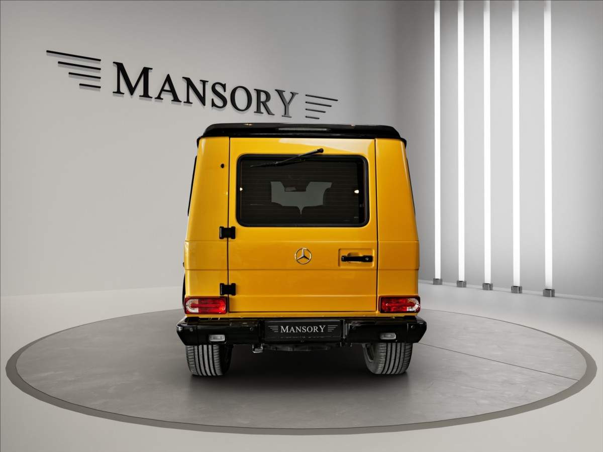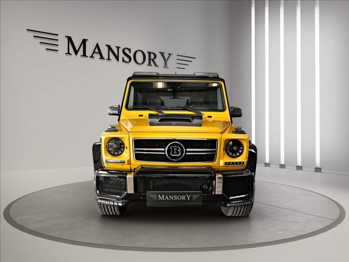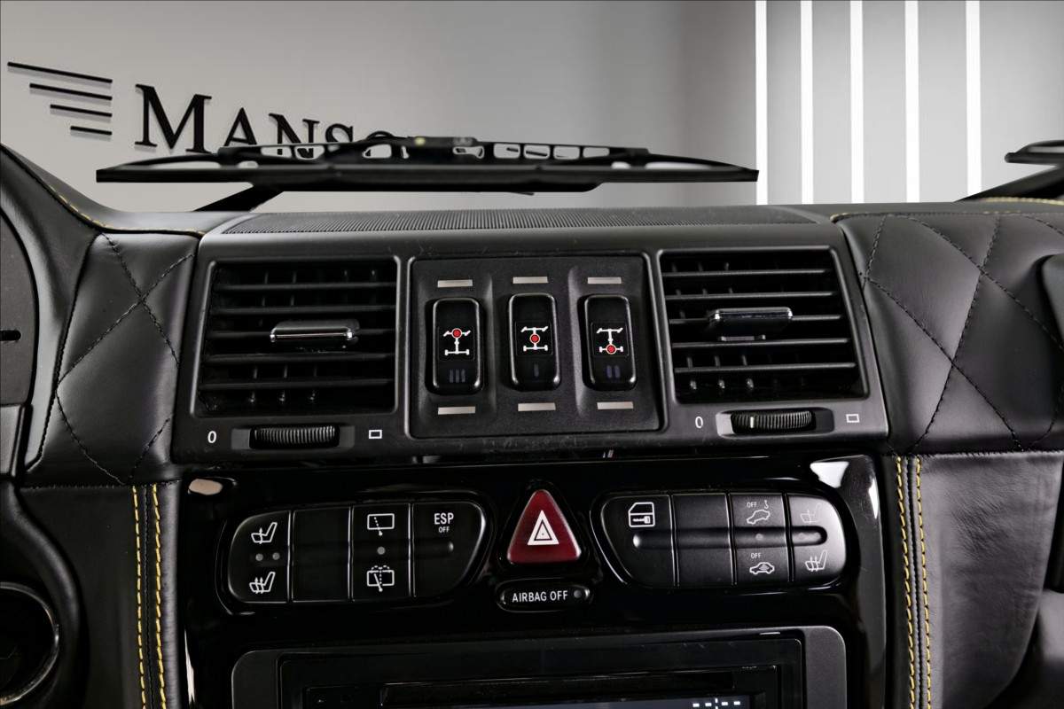 Dobrý den; máme na prodej Mercedes-Benz G500 Coupé Brabus. Vozidlo je lakované v žluté metalické barvě. Interiér je v černé kůži s kontrastním žlutým prošíváním. Další výbava vozidla: 21 palcové kované disky Brabus; Brabus přední a zadní nárazník; karbonový kryt kapoty Brabus; Led denní svícení Brabus; střešní led světla Brabus v karbonu; karbonové kryty zrcátek; 2din dotykové rádio Kenwood; parkovací kamera; multifinkční volant...;