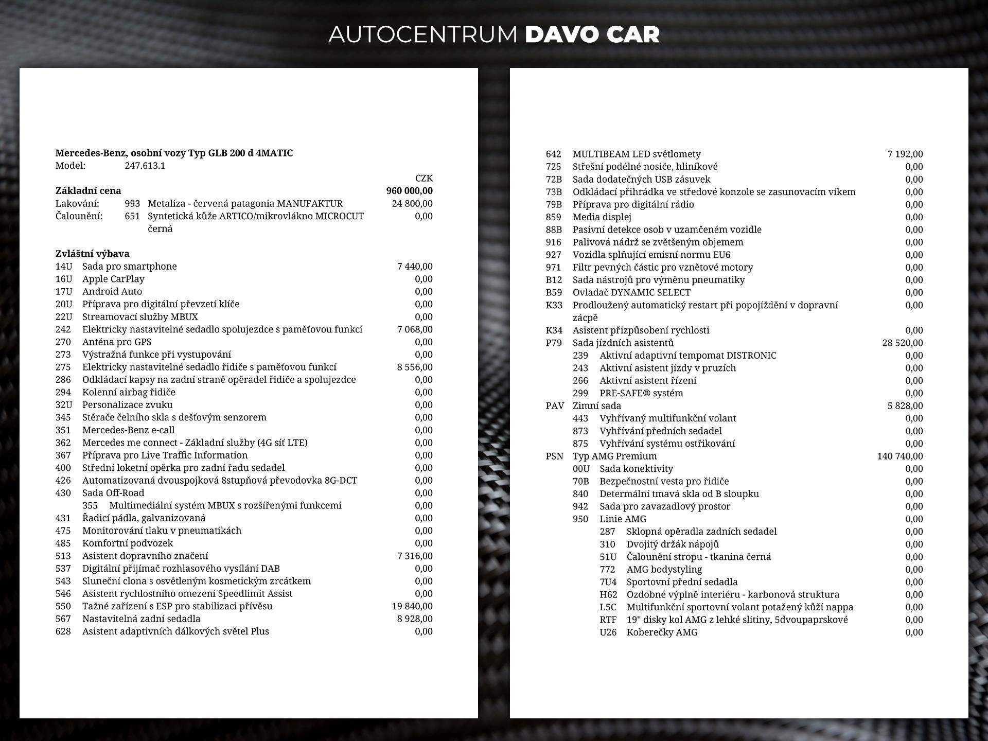Sleva 100.000 kč při využití financovaní s vybranými partnery; První majitel; Úvěr možný; Ev.č. K240726. Vozidlo k vidění v showroomu DAVO Exklusive; Vůz po 1. majiteli; koupeno v ČR. Elektronická servisní historie. Možnost výhodného financování vozu a prodloužené záruky. Výbava : AMG Premium; Linie AMG; Disky kol AMG z lehké slitiny 19'; 5dvoupaprskové; pneu letní 235/50 R19; Sada na opravu pneumatik TIREFIT; Surround soundsystém Burmester®; Sada jízdních asistentů; MULTIBEAM LED světlomety; Asistent dopravního značení; Sada Off-Road;