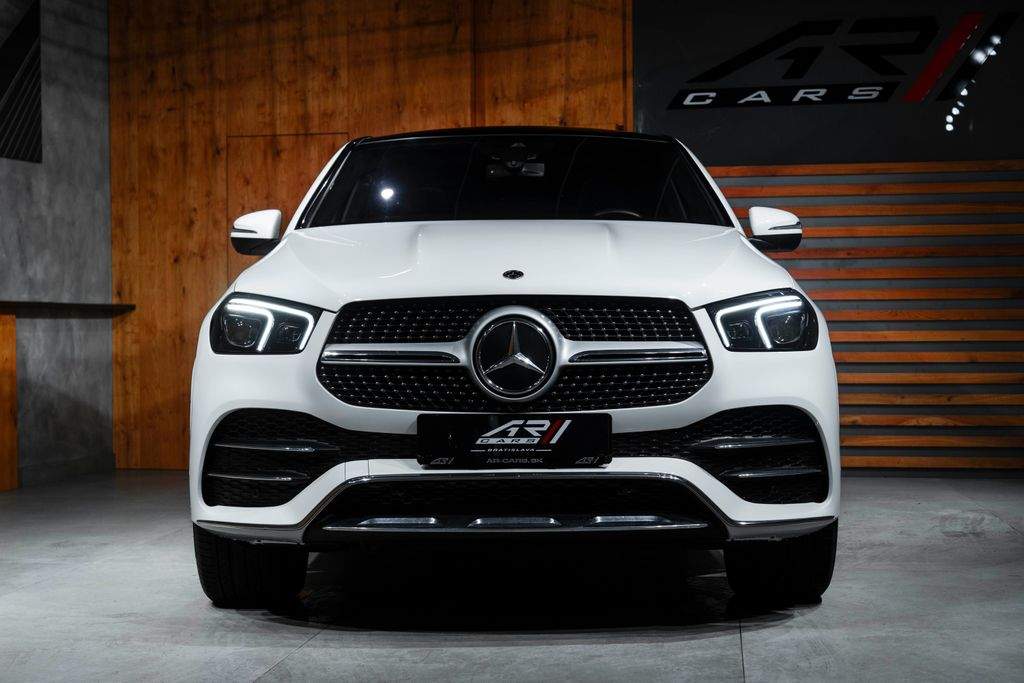 Bratislava; Mercedes-Benz GLE 400 d 4MATIC Coupé Exteriér: POLARWEISS – nemetalický lak Pohon & podvozok 3.0 R6 diesel 400 d – 243 kW / 330 k Automatická prevodovka 9G-TRONIC Pohon všetkých kolies 4MATIC Vzduchové odpruženie AIRMATIC (zadná náprava) Jazdné režimy DYNAMIC SELECT Regulácia rýchlosti pri zjazde z kopca (DSR) Exteriér AMG Line exteriér 20” AMG zliatinové disky LED High Performance / MULTIBEAM LED svetlomety AMG športové nárazníky Tónované zadné okná Elektricky sklopné vonkajšie spätné zrkadlá Strešné lyžiny Interiér & komfort Kožený / ARTICO interiér Elektricky nastaviteľné predné sedadlá s pamäťou Vyhrievané a ventilované (chladené) predné sedadlá Vyhrievané zadné sedadlá 4-zónová automatická klimatizácia (THERMOTRONIC) Ambientné interiérové osvetlenie (viacfarebné) Kožený multifunkčný športový volant Elektricky ovládané zadné dvere kufra Bez kľúčový prístup KEYLESS-GO Infotainment & technológie Multimediálny systém MBUX Plne digitálny prístrojový štít + centrálny displej Navigačný systém Apple CarPlay & Android Auto Hlasové ovládanie „Hey Mercedes“ Dotykový ovládač (touchpad) Bezpečnosť & asistenčné systémy PARKTRONIC so zadnou / 360° kamerou Aktívny brzdový asistent Aktívny asistent udržiavania v jazdnom pruhu Asistent mŕtveho uhla Adaptívny tempomat (DISTRONIC – v závislosti od konfigurácie) Asistent rozjazdu do kopca Komplexný airbagový systém Dodatočná výbava ISOFIX Automatické prepínanie diaľkových svetiel Dažďový a svetelný senzor Alarm Originálne koberce Mercedes-Benz;