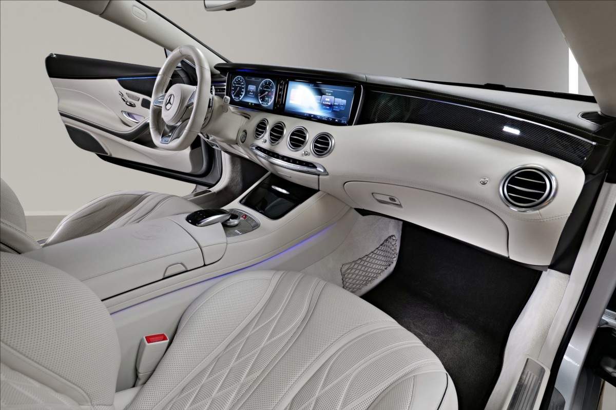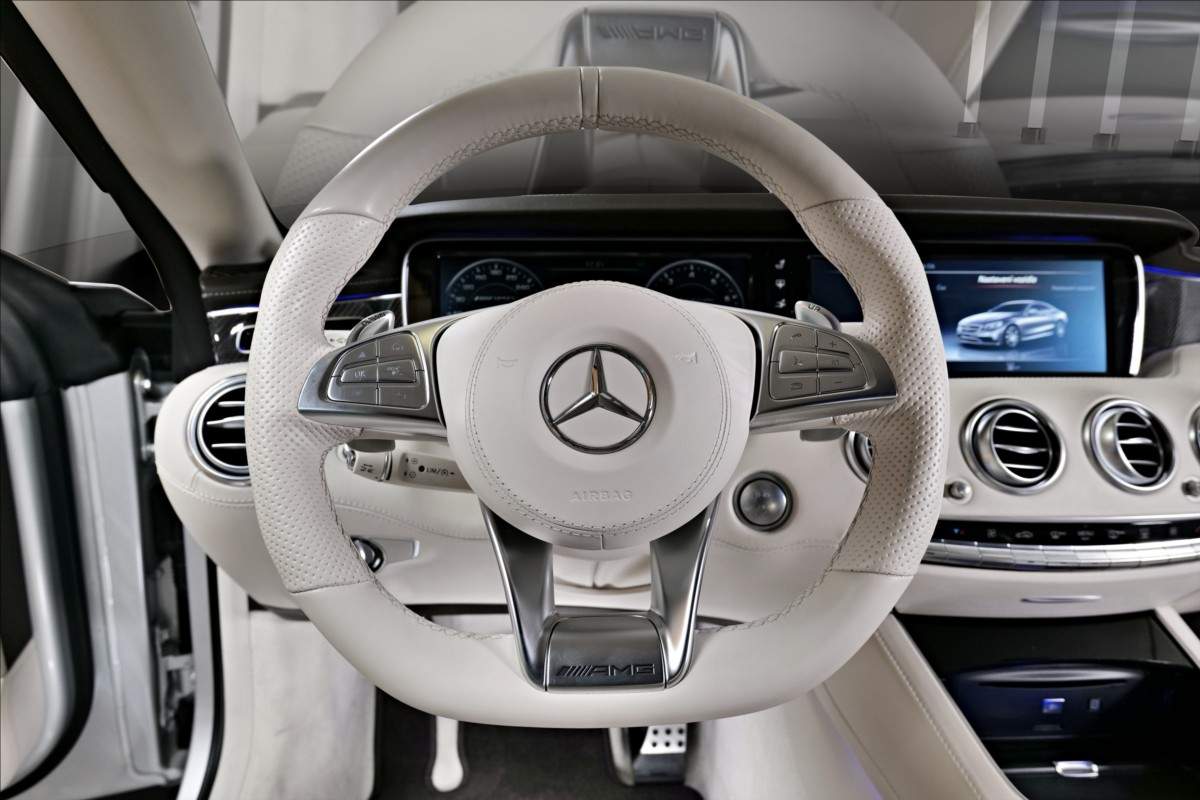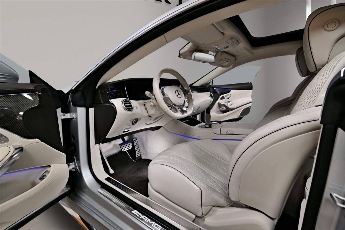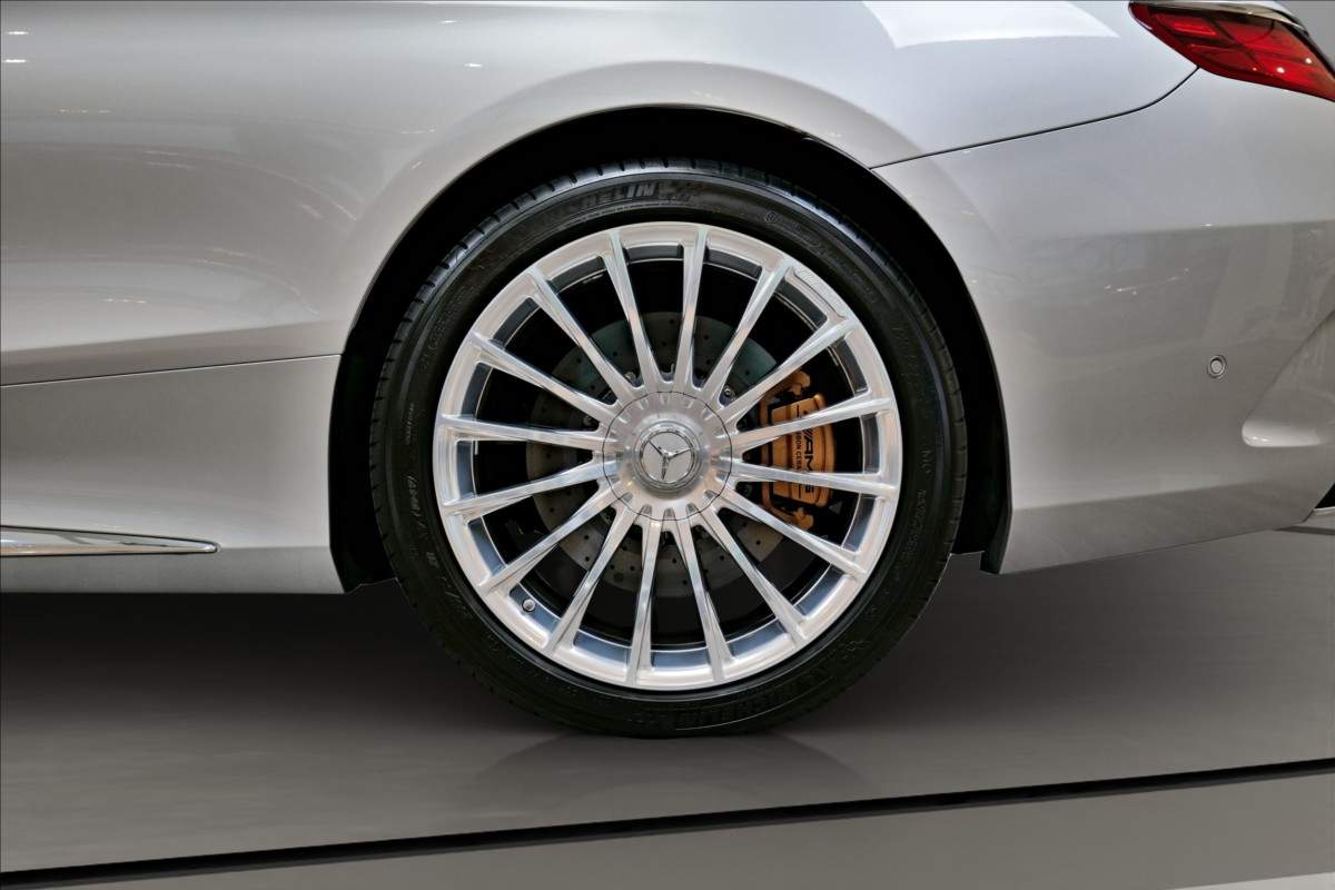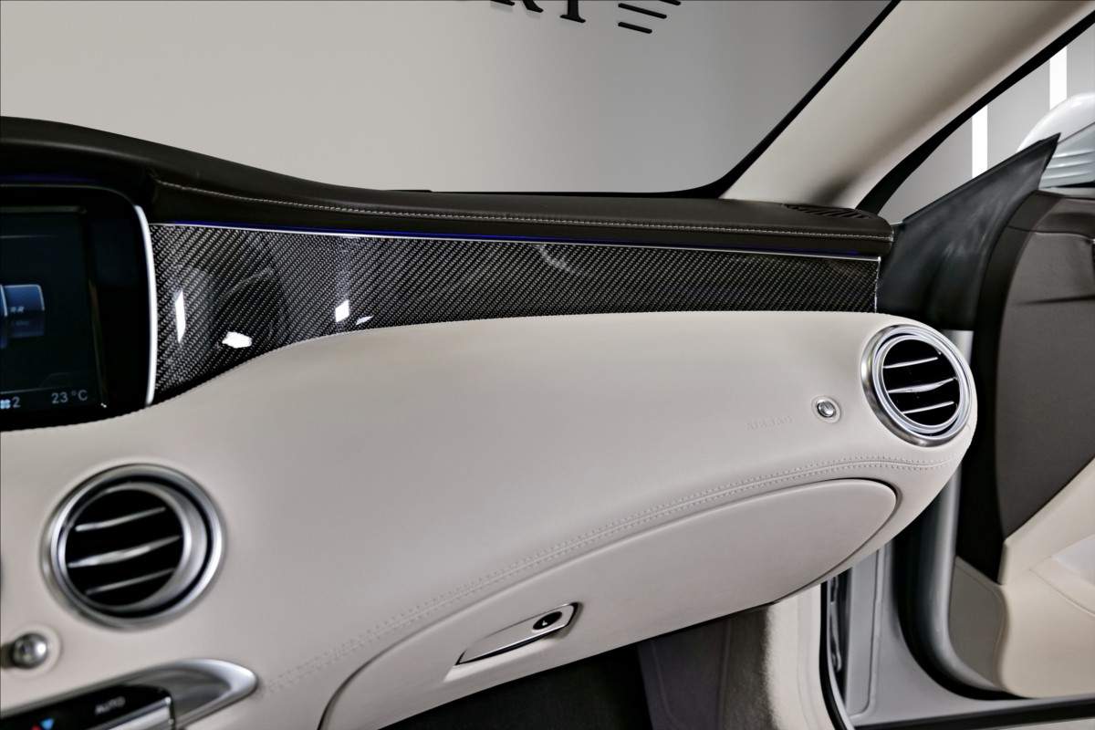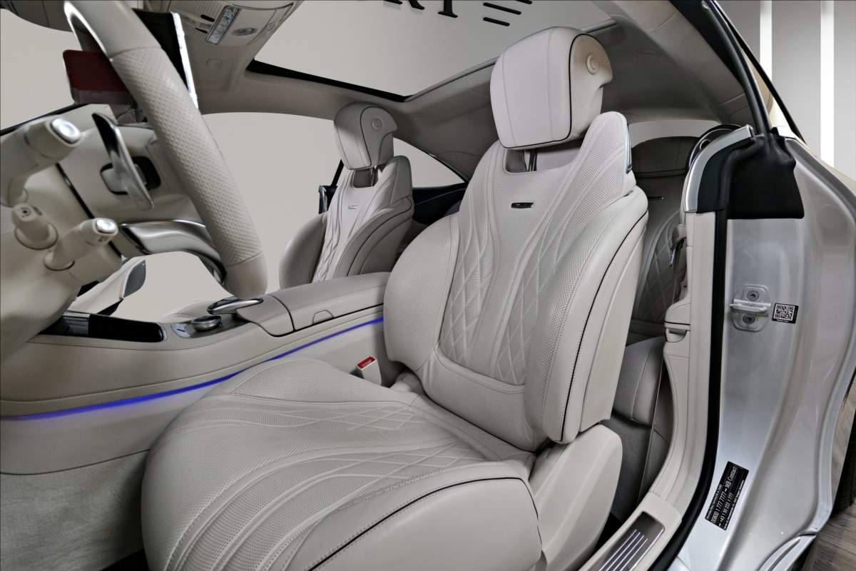 Dobrý den; máme na prodej Mercedes-Benz S65 AMG Coupe; vozidlo má 20 palcová chromová kola; mezi další prvky výbavy patří: Karbon-keramické brzdy; brzdové třmeny AMG lakované ve zlaté barvě; krémově bílí interiér; černá kožená palubní deska prošívaná bílou nití; karbon dekor; plakety AMG na sedačkách; logo AMG na loketní opěrce; noční vidění; vyhřívané i odvětrávané přední sedačky; elektrické opěrky hlav; světla ozdobeny krystaly SWAROVSKI; podsvícené prahy dveří AMG; sound systém Burmester...;