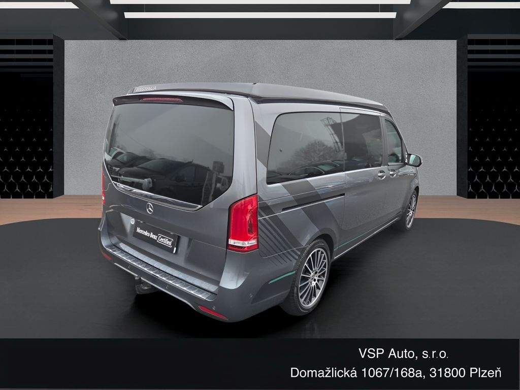 Autorizovaný dealer Mercedes-Benz. V 300d MARCO POLO; 4MATIC; AMG paket. Kamera 360°; adaptivní tempomat; nezávislé teplovzdušné topení; navigace; odnímatelné tažné zařízení. Sprcha; chladnička; vařič; termo vložky do oken; zádržná síť na horní lůžko; střešní nosiče; sada letních kol na alu discích... Možnost zakoupit záruku na 24 měsíců. K vozu Vám poskytne veškeré informace p. Jiří Janka; tel.: 733 595 665; janka@vsp-auto.cz;