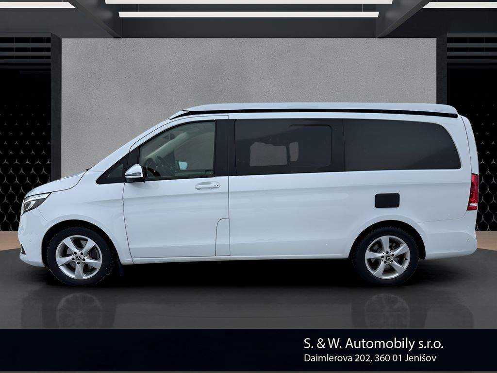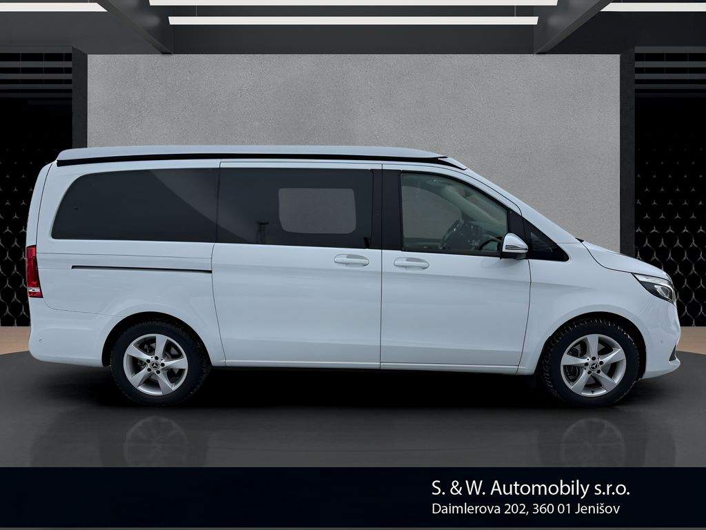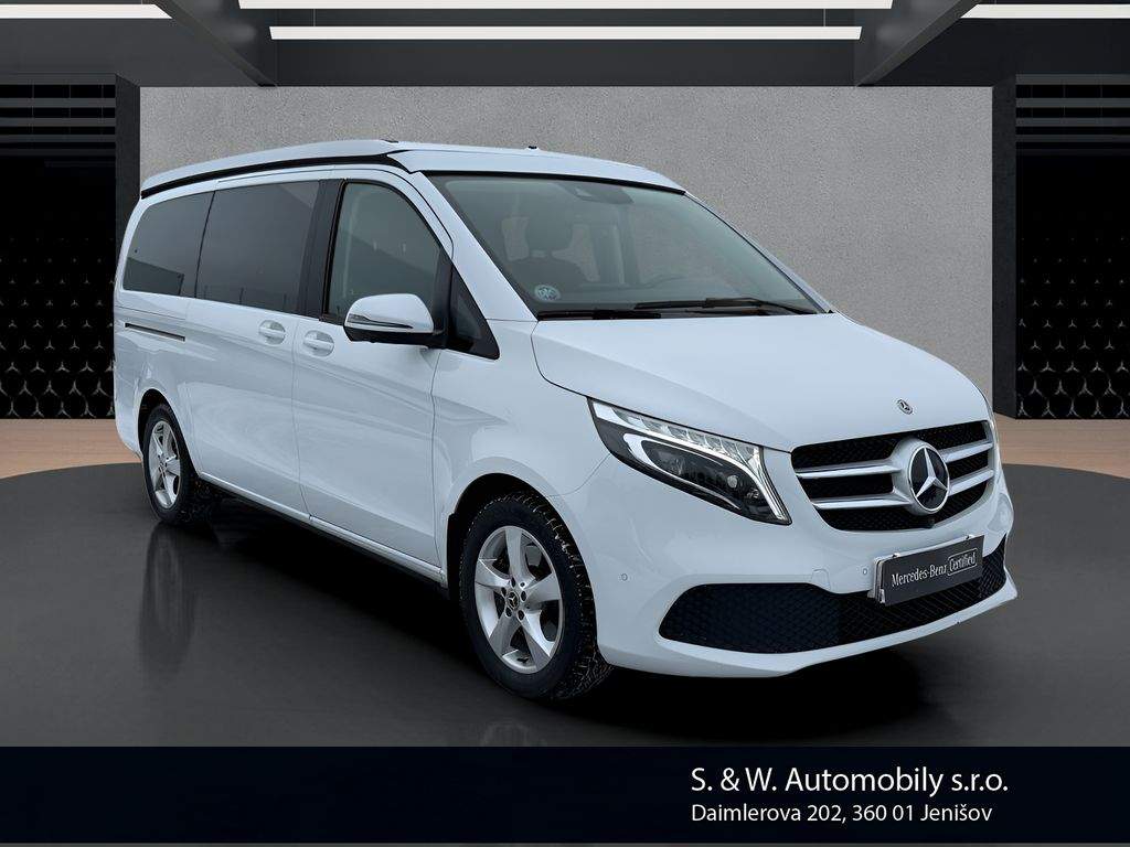 Nabízíme k prodeji Mercedes-Benz Marco Polo ve velmi dobrém stavu. Vůz prodáváme jako autorizovaný dealer – garantovaný původ; prověřená historie a profesionální zázemí servisu. Jedná se o obytnou dodávku (karavan) s naftovým motorem o výkonu 120 kW (163 k); automatickou převodovkou a pohonem 4x2; rok výroby 2020; s první registrací dne 4. 9. 2020. Mercedes-Benz Marco Polo je ideální volbou pro cestování a víkendové výlety – nabízí komfort značky Mercedes-Benz a praktické řešení pro pohodlné přespání i delší pobyty na cestách. V případě zájmu rádi zašleme kompletní specifikaci výbavy a veškeré dostupné informace k historii a stavu vozu. Samozřejmostí je možnost prohlídky vozu u nás. Zajistíme také financování nebo operativní leasing na míru; případně nabízíme možnost protiúčtu za váš stávající vůz. Doporučujeme domluvit termín prohlídky předem; aby byl vůz připraven k prezentaci. U tohoto vozu není možnost odpočtu DPH.;