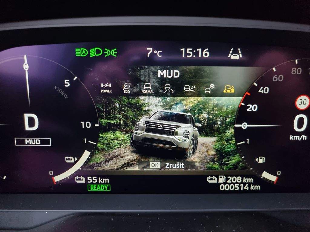 Plná servisní dokumentace od autorizovaného servisu Mitsubishi. Na vozidle plná tovární záruka až 8 let nebo 160.000 km; na baterii záruka 8 let nebo 160.000 km. Kapacita baterie 22; 7 kWh; napětí 355 V; běžné nabíjení (domovní zásuvka) cca 10 hodin (100%); rychlé nabíjení cca 32 minut (80%); dojezd čistě na el. až 113 km (dle jízdních a klimatických podmínek). Kombinovaný dojezd (el. + benzin) až 834 km.;