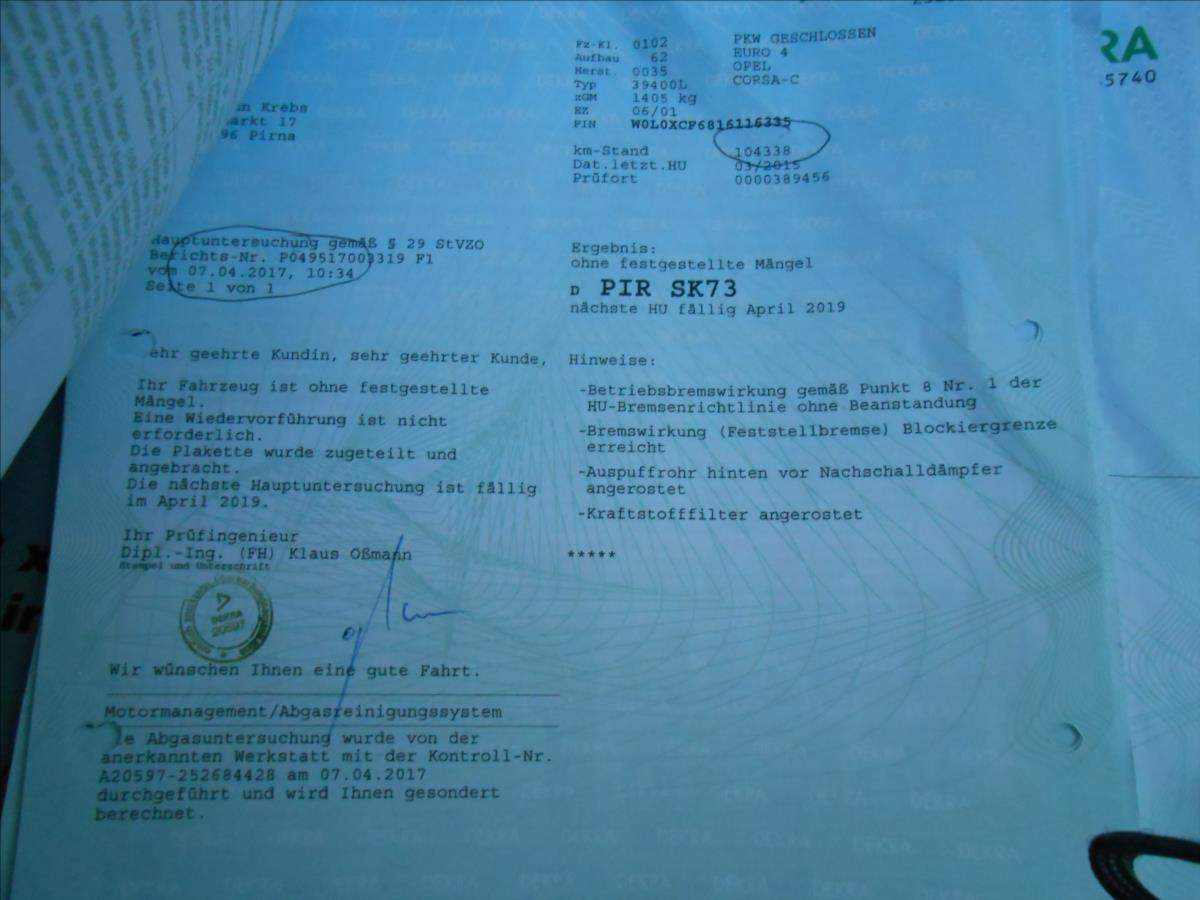 Druhý majitel; STK a emise v hodnotě 2.800; Kč - po dohodě zajistíme .Stav kilometrů doložen protokoly ze STK ze země původu vozidla za posledních 10 roků . U vozidla komplet nový výfuk . Corsa 1.0 12V 43 kW;