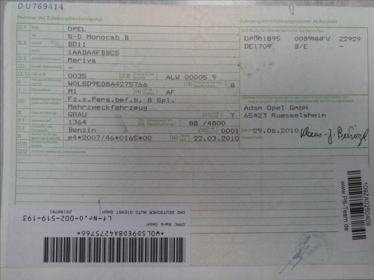 W0LSD9ED8A4275766 prověřit vozidlo online