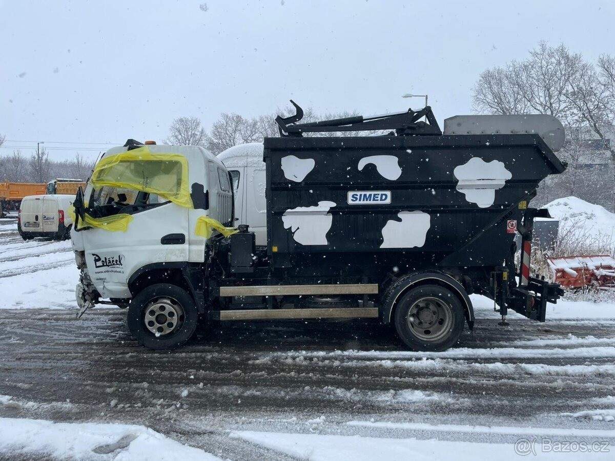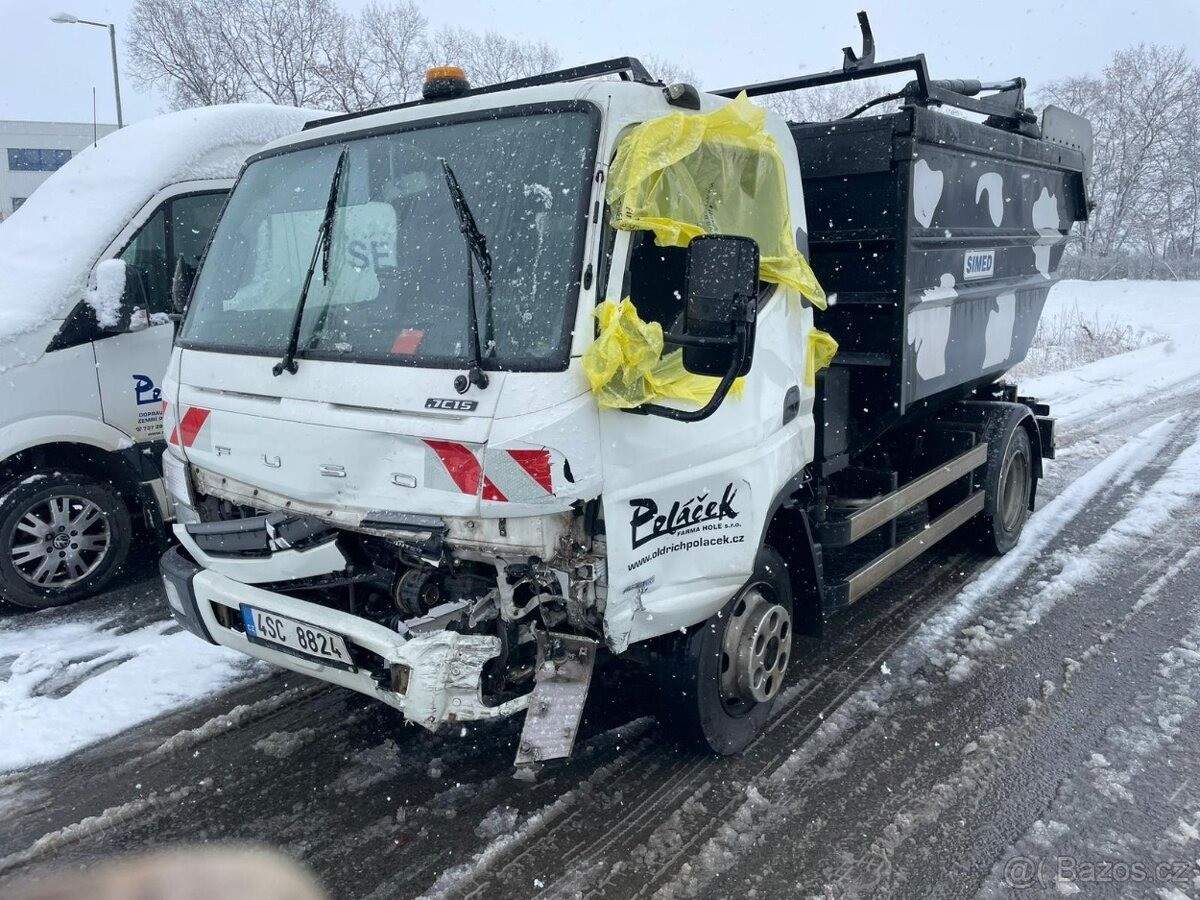 TEL: 737289920 OKR: PRAHA Prodám Nákladní automobil FUSO CANTER 4X2; rozvor 2800 mm + nástavba SIMED LN 7000 pro nakládku odpadu se zadním universálním vyklápěčem. Rok výroby 2017. Auto je bourané vlevo vepředu viz foto. Auto je pojízdné; řazení; spojka; motor a brzdy fungují. Řízení je mírně prohnuté. Nástavba nepoškozena; funguje. Cena za komplet (automobil a nástavba) 450.000; -Kč;