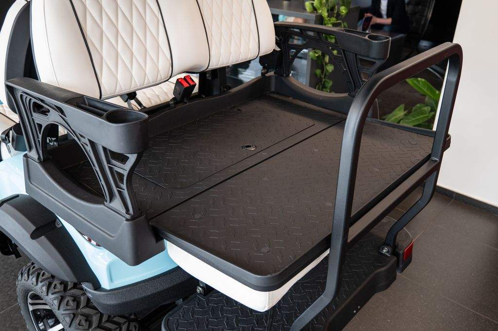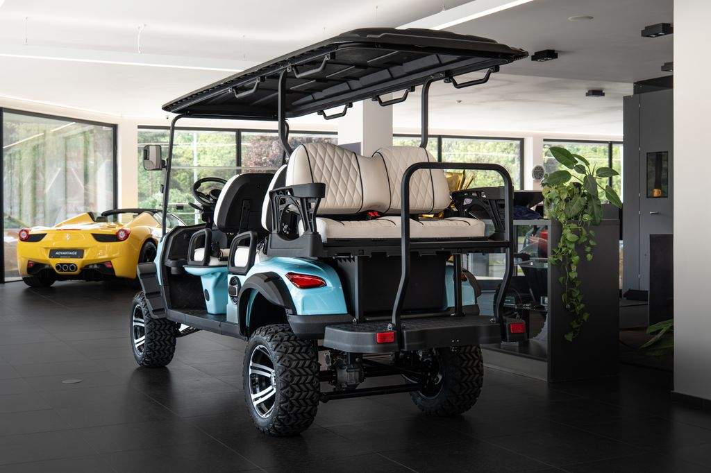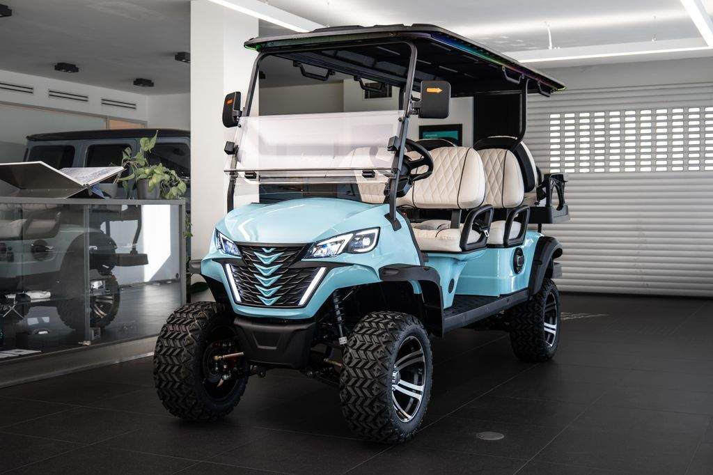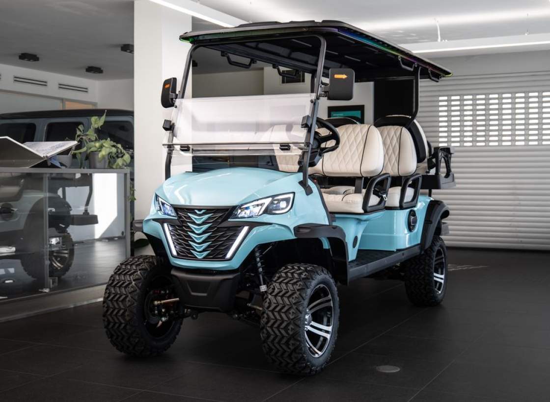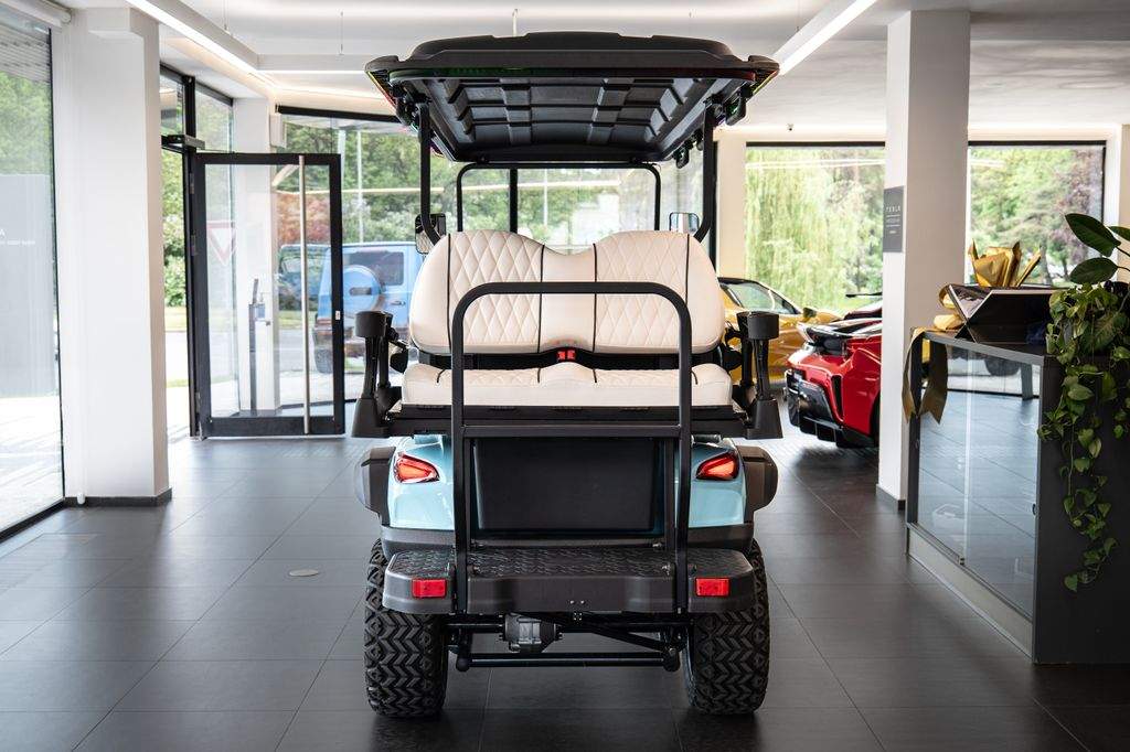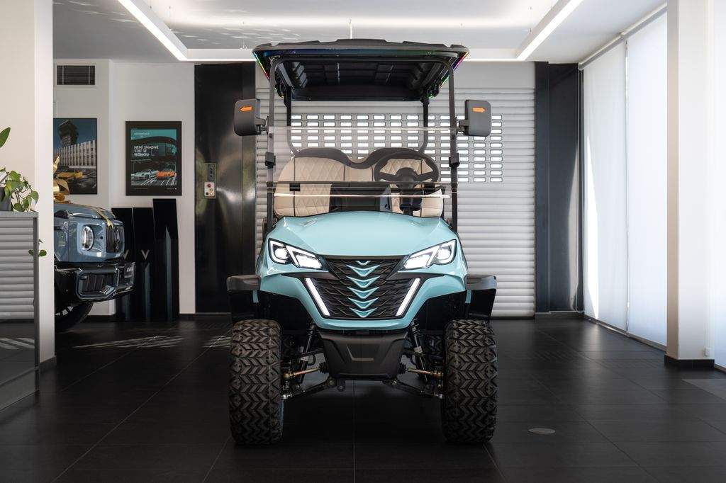 Dojezd >120 km; Maximální rychlost: 30 km/h; Maximální stoupavost: 15 %; Hmotnost bez nákladu: 680 kg; Rozměry: 3680 × 1350 × 2100 mm; Světlá výška: 240 mm; Rozvor: 2440 mm; Rozchod předních kol: 900 mm; Rám z vysokopevnostní oceli; Lithiová baterie 72V / 115Ah; Motor: střídavý; 5 kW; Řídicí jednotka: Enpower; Pneumatiky 23×10.5–14; Nabíjení 220V; 10' LED přístrojový panel; Zrcátko s integrovaným směrovým světlem; Výstražný tón při couvání; Couvací kamera / obraz při couvání; LED světlomety / potkávací světla / dálková světla; Elektrická parkovací brzda (EPB); Bluetooth audio systém; Chladicí box; Bezpečnostní pásy certifikované podle normy DOT; Barva vozíku: světle modrá; Barva sedadel: bílá; LED podsvícení pod vozíkem a na střeše;