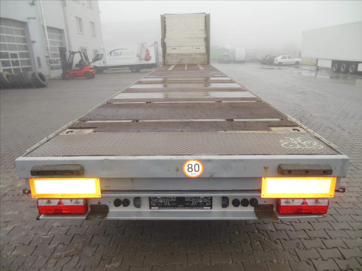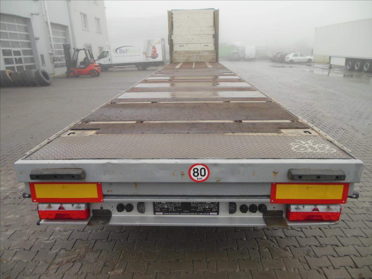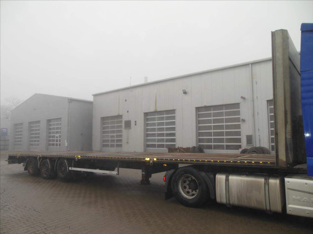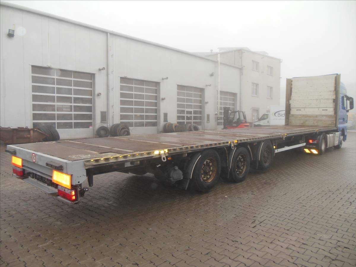 Návěs-valník; Panav NP036; LowDeck; Originál plato; Provoz 9/2017; 1 a 3 náprava zvedací; nápravy BPW; kapse pro klanice; 8 kusů zámků pro kontejnery; kotoučové brzdy; ABS; pneu 445/45 R19; 5 stav: 1 osa 7 a 14 mm; 2 osa 15 mm; 3 osa 11 a 6 mm; Provozní hmotnost 6100 kg; Celková hmotnost 36.000 kg.;