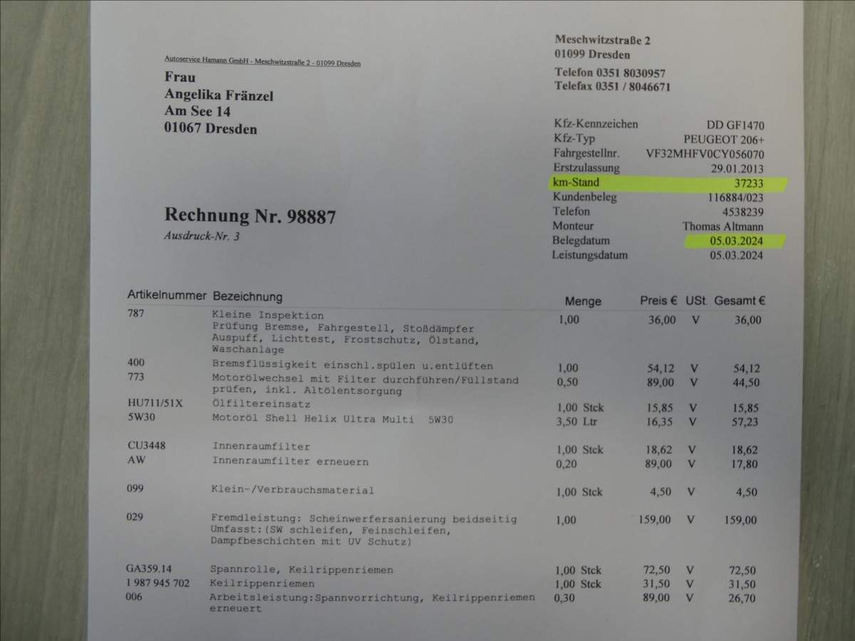 pravidelný doložený servis-poslední prohlídka při 37.305 km; výměna rozvodů při 35.201km v 3/2023-viz. foto servisky + faktury za opravy;