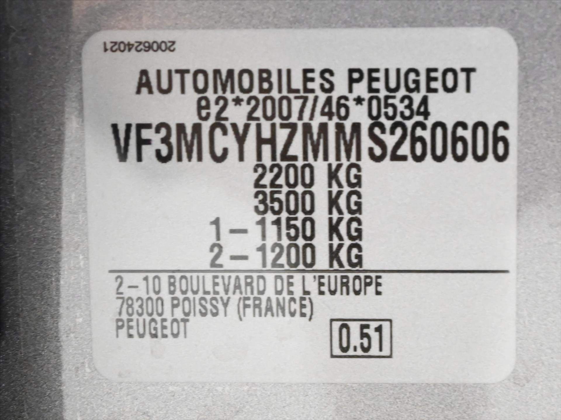 VF3MCYHZMMS260606 prověřit vozidlo online