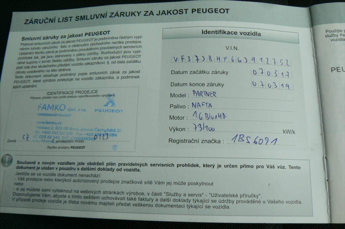 Peugeot Peugeot Partner Peugeot Partner - Nafta Peugeot Partner - Dodávka / minibus / MPV Peugeot Partner - 2017 Osobní vůz
