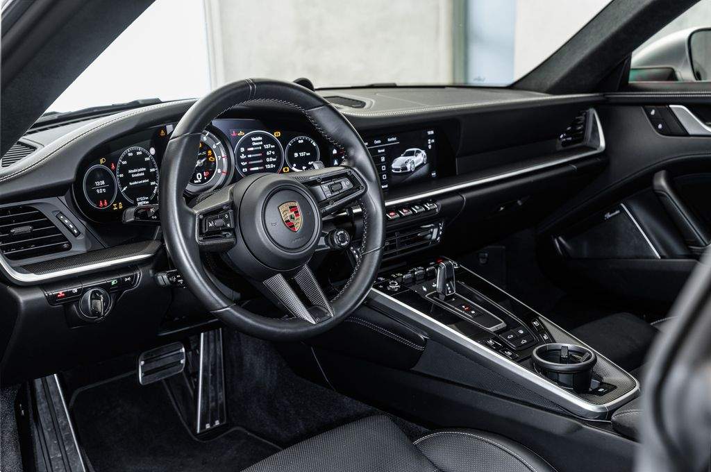 Ostrava; Celopolep do matné fólie; Akrapovič výfukový systém; čerstvě po servisní prohlídce; Balíček úložných prostorů; osvětlené prahové lišty (karbon); osvětlení prahů s LED projektorem s nápisem Porsche; asistenční systém řízení: parkovací asistent vpředu a vzadu včetně couvací kamery a Surround View; asistenční systém řízení: asistent udržování jízdního pruhu; asistenční systém řízení: asistent změny jízdního pruhu; ozdobné lišty oken černé (lesklé); čelní sklo s pásovým filtrem v horní části; vozidlo bez označení modelu; vnitřní výbava: celokožené; odlišná barva; balíček vnitřního osvětlení / balíček světelného designu; ionizátor pro čištění vzduchu; vyhřívaný volant (sportovní/hladká kůže; 3 paprsky) s multifunkcí; funkcí řazení a krytem volantu z karbonu; obložení sloupku řízení kůží; zvedací systém přední nápravy; litá kola (černá; lesklý lak); hliníkové ráfky vpředu/vzadu: 9; 5x20 / 12x21 (911 Turbo S Exclusive Design kola); lakovaný kryt bočního přívodu vzduchu; Matrix LED světlomety; tónované; včetně Porsche Dynamic Light System Plus (PDLS+); metalický lak; hliníkový řadicí/volicí páka; elektrické střešní okno (sklo); posilovač řízení Plus (v závislosti na rychlosti); ventilace sedadel vpředu; zvukový systém Burmester High-End Surround; sportovní výfukové potrubí; koncovky výfuku černé; sportovní sedadla plně elektricky nastavitelná (14 směrů) včetně paměťového balíčku; Termín prohlídky si prosím domluvte předem;;