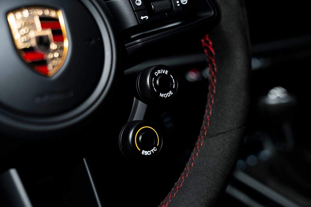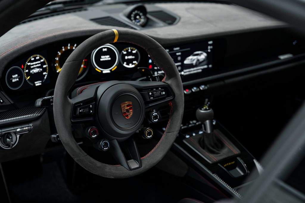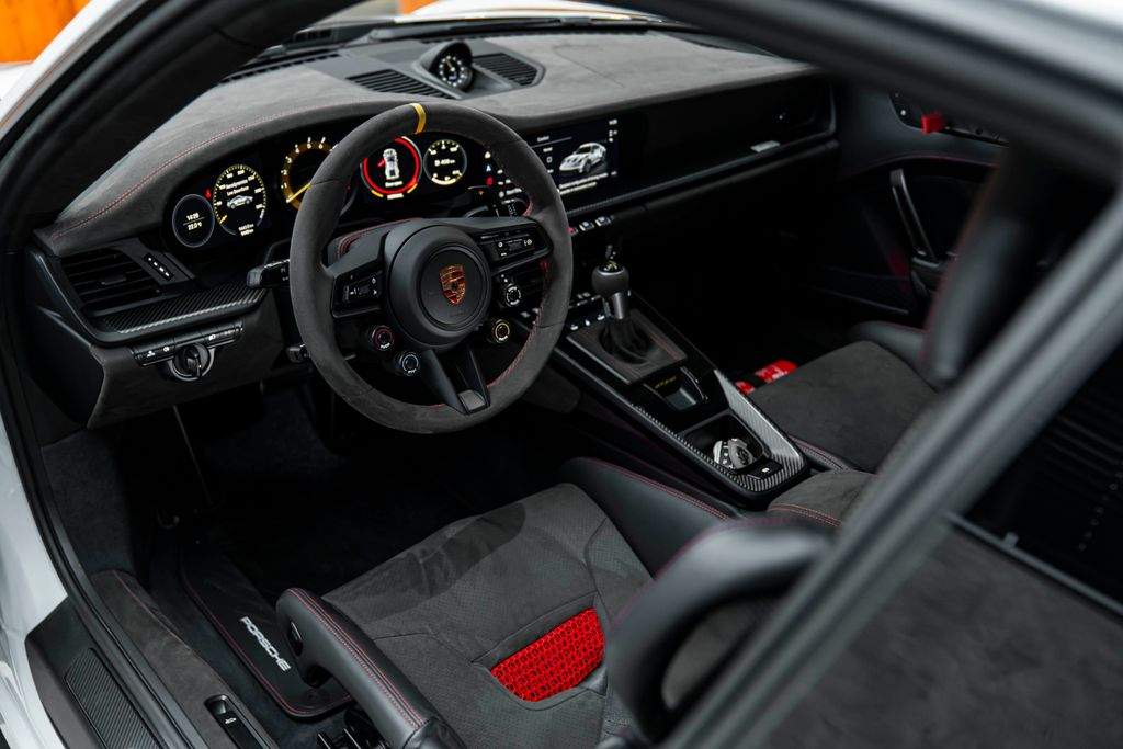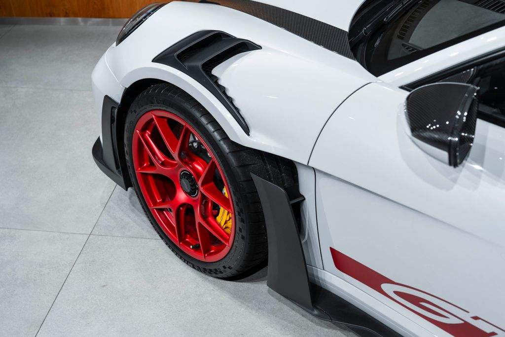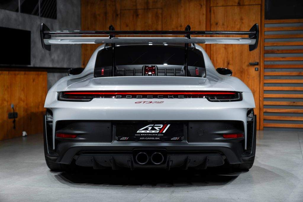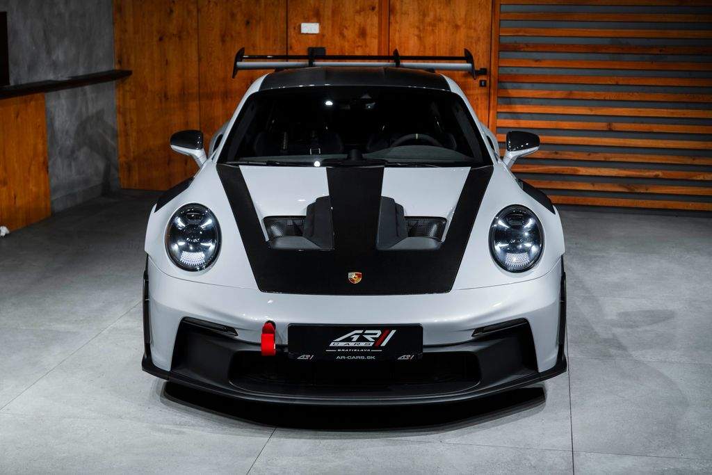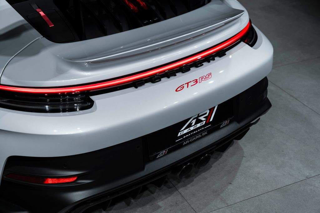 Bratislava; Porsche 911 GT3 RS Pohon; podvozok & výkon Keramické brzdy Porsche Ceramic Composite Brakes (PCCB) Systém zdvihu prednej nápravy Zväčšená palivová nádrž 20”/21” kované ultralahké magnéziové disky GT3 RS Disky lakované vo farbe Pyro Red Weissach Package – rozsiahle odľahčenie zamerané na maximálny výkon na okruhu Exteriér Tónované LED Matrix svetlomety s PDLS Plus Matné karbónové nástupné lišty s podsvietením Farebné bočné logo „Weissach RS“ na zadnom krídle Exteriérové polepy v odtieni Pyro Red Ochranná fólia na prednej časti vozidla Tónované (privacy) sklá Otvárač garážových brán HomeLink® Interiér – šport & luxus Club Sport Package vrátane 1 kg homologovaného hasiaceho prístroja 3D tlačené karbónové celokošové sedadlá – mäkšia tuhosť Rozšírený balík Race-Tex s farebným dekoratívnym prešívaním Prvky Race-Tex: slnečné clony kryty vývodov bezpečnostných pásov veko odkladacieho priestoru s erbom Porsche Kožené obloženie stĺpika riadenia Kožené lamely a výduchy ventilácie s farebným dekoratívnym prešívaním Karbónové podlahové rohože s koženým lemovaním Akcentové logá balíka v farbe Pyro Red Otáčkomer v odtieni Racing Yellow Komfort & asistenčné systémy Cúvacia kamera Automaticky stmievateľné vnútorné aj vonkajšie spätné zrkadlá Integrovaný dažďový senzor Balík interiérového osvetlenia Light Design Package Audiosystém BOSE® Surround Sound Príprava na palubnú kameru (dash cam) Exkluzívne detaily Personalizované lakované kľúče vozidla s puzdrom LED osvetlenie dverí s logom „BORN IN FLACHT“ Lekárnička prvej pomoci;