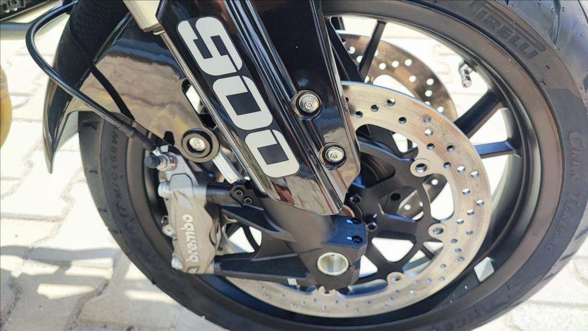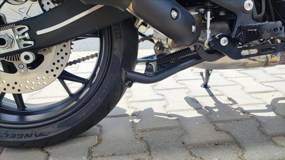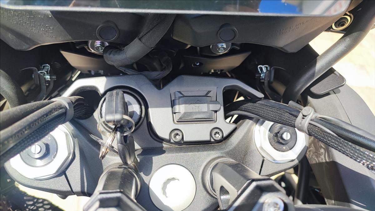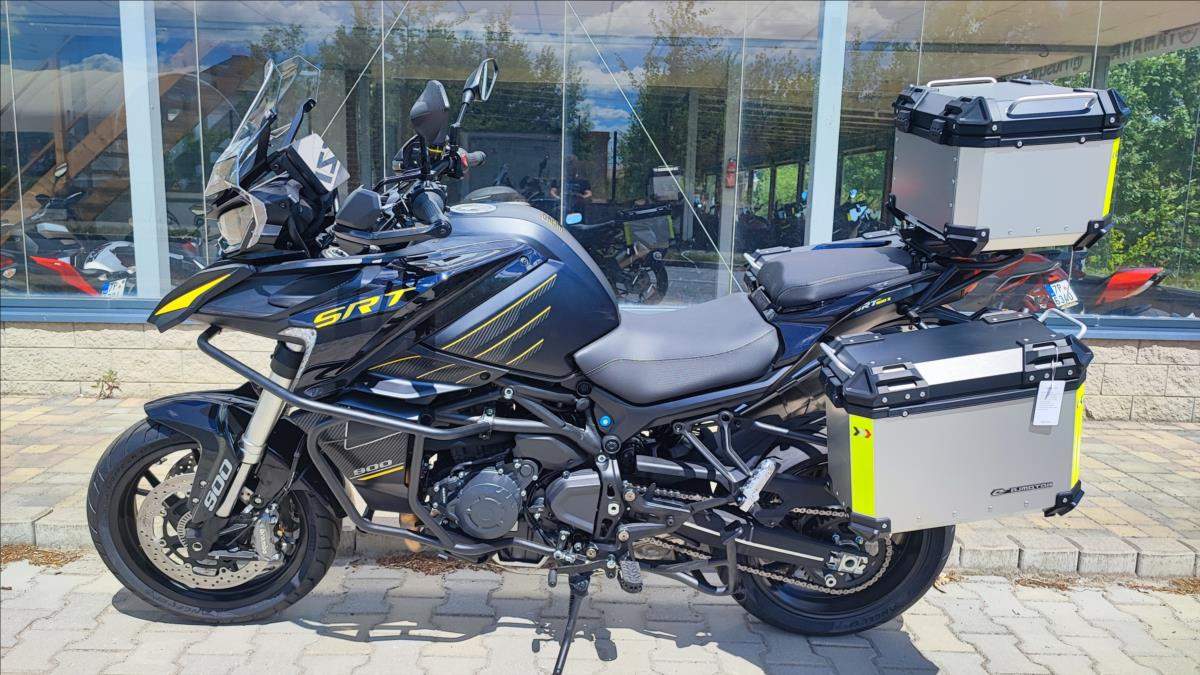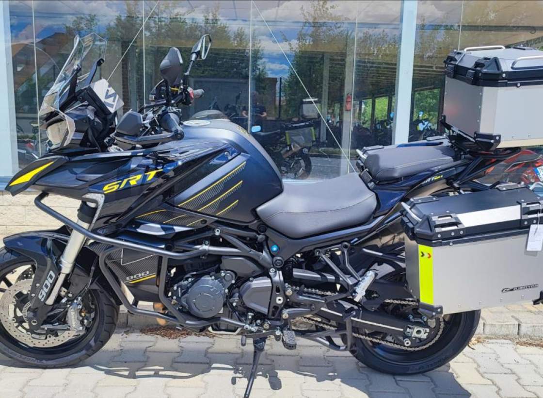 Nový motocykl; novinka roku 2025; cena včetně 3 alu kufrů; oboustraný QS; Tempomat; TFT; TC; radar na mrtvé úhly; přední kamera s DVR; zrcadlení a připojení telefonu; navigace; aplikace v telefonu; hlídání tlaku a teploty v penumatikách; vyhřívaná sedačka a rukojeti atd!!!; Technické údaje: Typ motoru 2-válcový řadový motor; kapalinou chlazený; Typ rozvodů DOHC; 8 ventilů; Objem válců 904 ccm; Vrtání / Zdvih 92 mm x 68 mm; Výkon motoru 70 kW (95 PS) při 9.000 ot./min; Točivý moment 90 Nm při 6.500 ot./min; Příprava směsi Elektronické vskřikování paliva; Způsob startování Elektrický startér; Spojka / ovládání Vícelamelová mokrá spojka; lankem; Převodovka / převod 6 rychlostní / sekundární převod řetězem; Emisní norma Euro 5+; Hlučnost při stání - dB; Emise CO2 - g/km; Spotřeba paliva 4; 7 litru / 100km; Palivo Benzin E5 / E10; Maximální rychlost 230 km/h; Konstrukce podvozku Trubkový rám / kyvka hliníkový profil; Přední odpružení Upside down vidlice; olejové tlumení; Zadní odpružení Nastavitelné odpružení; komprese a odskok; Zdvih předního kola 160 mm; Zdvih zadního kola - mm; Světlá výška 180 mm; Přední pneumatika 120/80R-19 / Maxxis MaxxVenture (bezdušová); Zadní pneumatika 180/70R-17 / Maxxis MaxxVenture (bezdušová); Přední brzda ABS 2x kotoučová radiální brzda Brembo 320 mm; Zadní brzda ABS Jednokotoučová brzda Brembo 260 mm; Rozměry motocyklu 2.260 mm / 950 mm / 1.405 mm; Rozvor 1.540 mm; Výška sedadla 835 mm; Objem palivové nádrže 24 litrů; Pohotovostní hmotnost motocyklu 263 kg (vč.všech kapalin; paliva a aku); Dostupné barvy Černá; bílá;