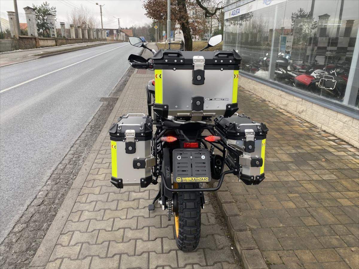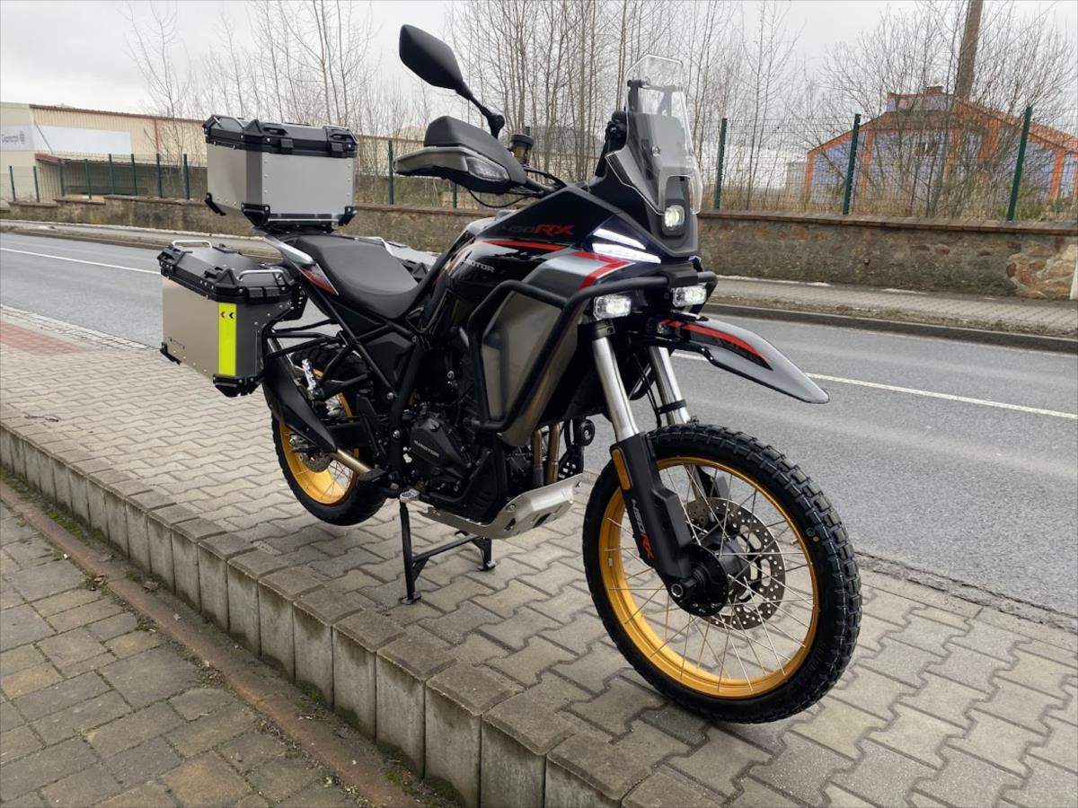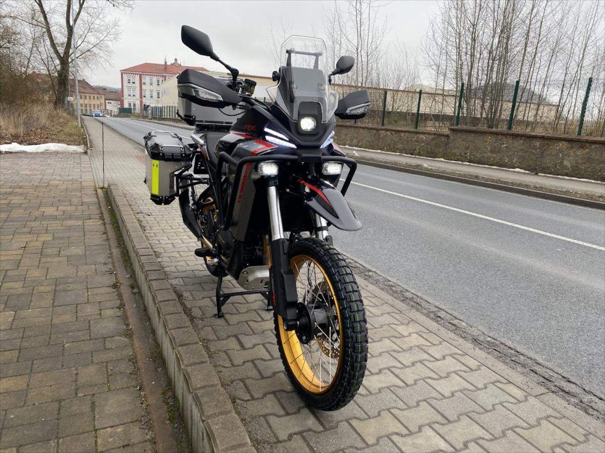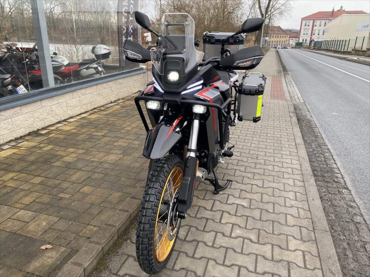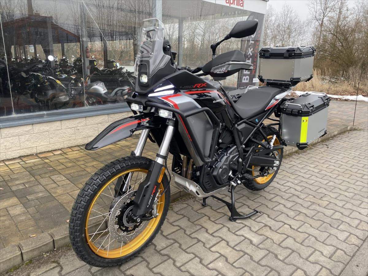 SRT 450 RX - Nová off-roadová ikona od QJMOTOR; Dát naším zákazníkům - motorkářům to nejlepší - to je jasná filozofie značky QJMOTOR. Nový adventure SRT 450 RX je motocykl; který zasahuje do velmi nabité kategorie teréních čtyřistapadesátek. Jedná se o motocykl; který se poučil z chyb konkurence a přišel sice o něco později; ale o to více dotažený k dokonalosti. Motor má objem stejně jako rally speciály na Dakaru o objemu 450cc; ale jedná se o řadový dvouválec; oproti jednoválcovým speciálům. Důvod je jednoduchý naše SRT450 RX není dobrá jen v terénu; ale musí obstát i při svižných přesunech po běžných silnicích. Jeho robustní; ale účelná konstrukce je plně oddána dosažení co nejnižší hmotnosti; která však nejde na úkor kvality materiálů. Tyto stroje musí obstát i při drsném zacházení a čím lehčí motocykl je; tím je to na úkor kvality materiálu. Přidejte velkou nádrž; nízkou spotřebu; vysoké zdvihy podvozku a světlou výšku; full LED osvětlení; bohatou výbavu a hmotnost pod 200 kg i se třemi kufry a máte tu nového krále této kategorie!;