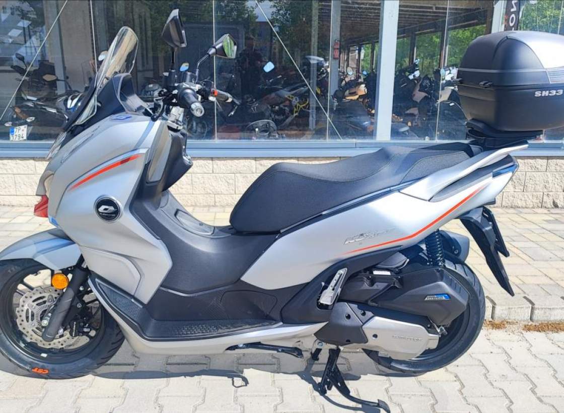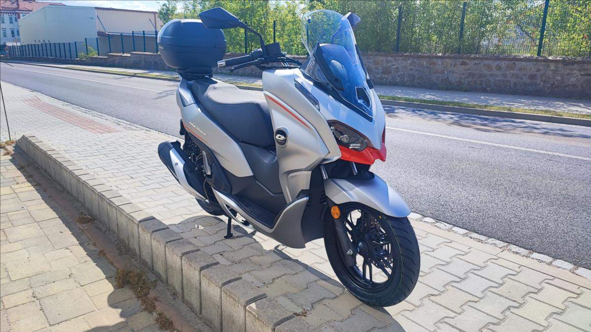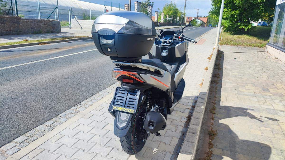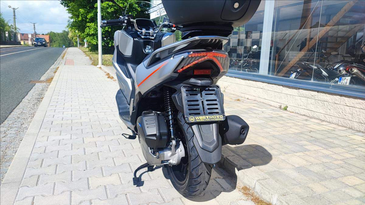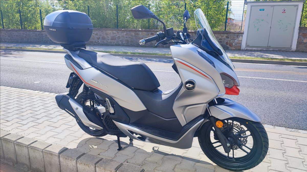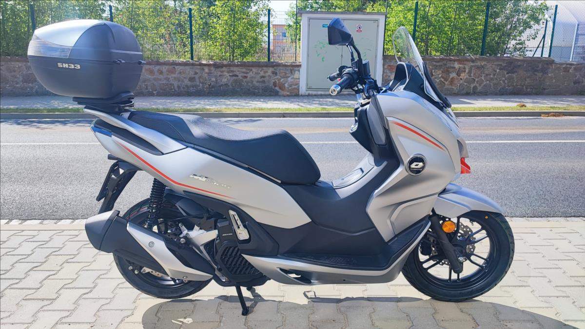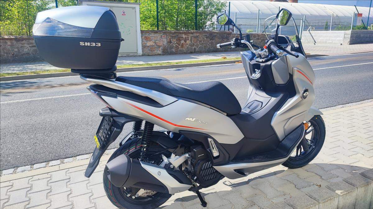 Technické údaje: Typ motoru Kapalinou chlazený čtyřtaktní jednoválec Typ rozvodů SOHC / 2 ventily Objem válců 125 ccm Vrtání / Zdvih 52; 4 mm x 57; 9 mm Výkon motoru 10; 8 kW (14; 7 k) při 8.750 ot./min Točivý moment 12 Nm při 8.250 ot./min Příprava směsi Elektické vstřikování paliva Způsob startování Elektrický startér Spojka / ovládání Automatická CVT / Variátor Zapalování ECU Bosch EFI Emisní norma Euro 5+ Hlučnost při stání 88 dB Emise CO2 52 g/km Palivo Benzin E5 / E10 Maximální rychlost 99 km/h Řidičský průkaz A1; B Konstrukce podvozku Trubkový rám / kyvné rameno s variátorem Přední odpružení Teleskopická vidlice Zadní odpružení Dva nastavitelné tlumiče Přední brzdy s ABS 1x hydraulická; dvoupístkový třmen o 240 mm / ABS Zadní brzda s ABS 1x hydraulická brzda; kotouč o o 225 mm / ABS Přední pneumatika 110/80/14 M/C / bezdušová Zadní pneumatika 130/70/13 M/C / bezdušová Rozměry (D; Š; V) 1945 mm / 765 mm / 1.230 mm Rozvor 1.335 mm Výška sedadla 755 mm Objem palivové nádrže 8 litrů Pohotovostní hmotnost 132 kg (vč.všech kapalin; paliva a baterie) Osvětlení Full LED Typ přístrojů 7' barevný TFT panel Konektivita Ano + zrcadlení navigace Dostupná barva Šedo - červená;