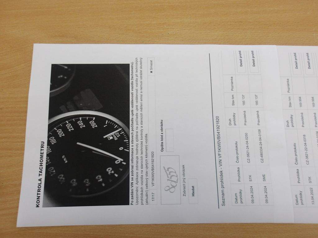 VF1KW0VB541921820 prověřit vozidlo online