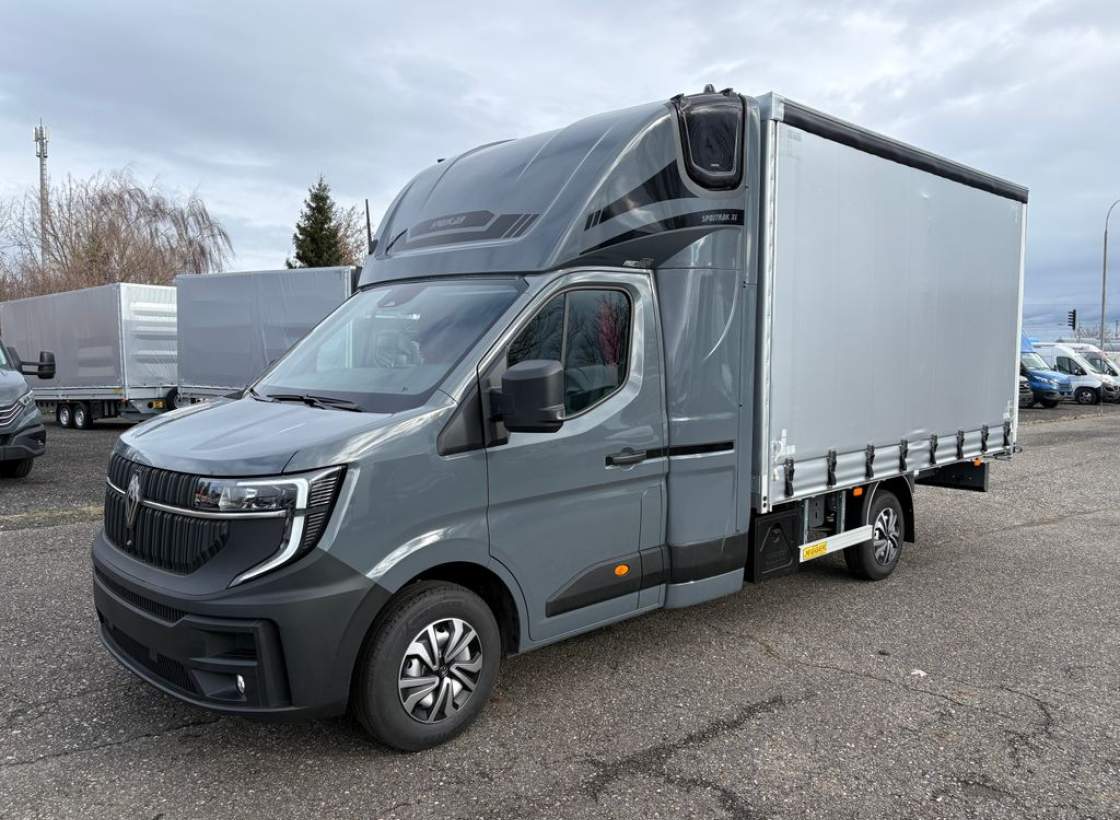 Renault Master 170k s automatickou převodovkou ZF A9 a plachtovou nástavbou na 8 palet. Vnitřní rozměry nákladového prostoru: délka 420cm; šířka 220cm; výška 225cm. Spací kabina Spojtrak XL se dvěma lůžky + nezávislé topení. Boční shrnovačka s napínákem. Vzduchové odpružení s manometry - dvouokruhové. Přídavná baterie. Parkovací senzory. Možnost dodělání tachografu.;