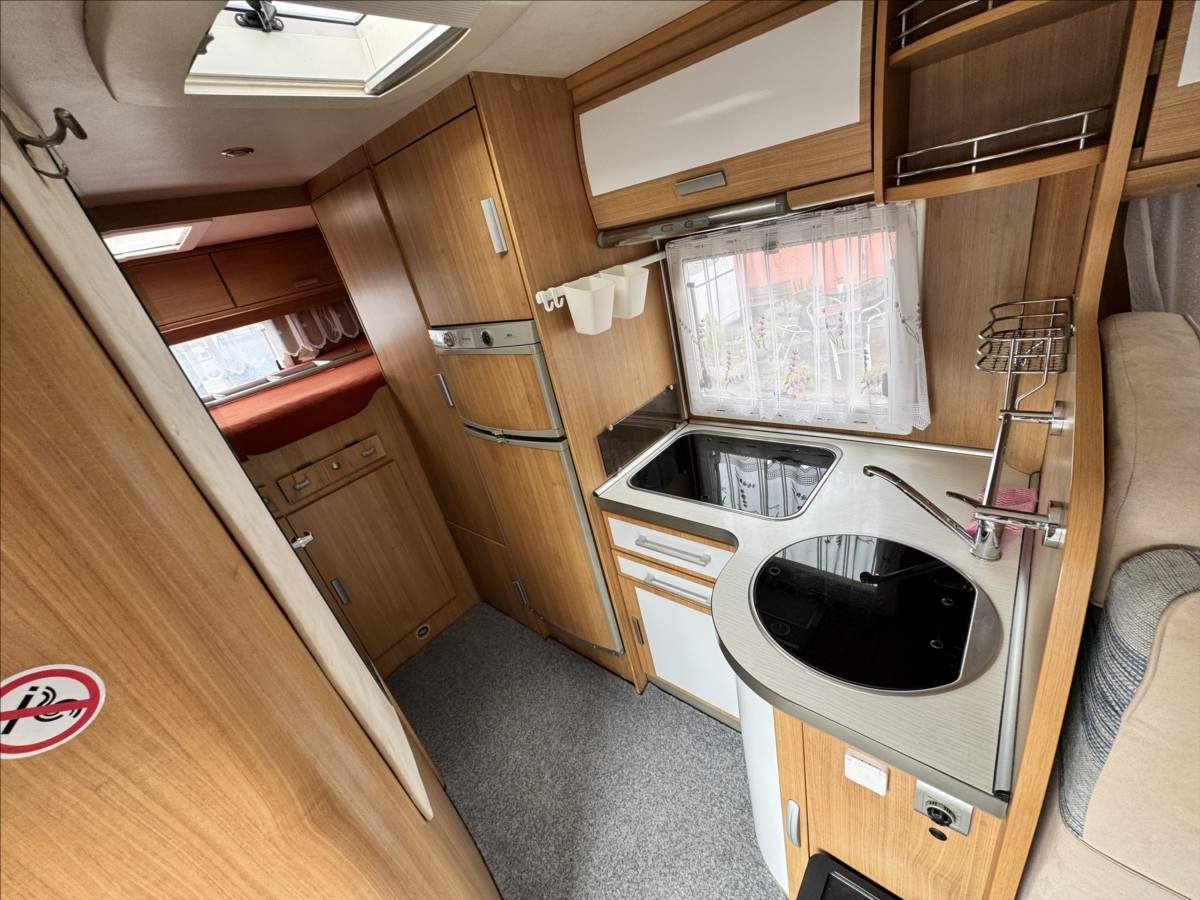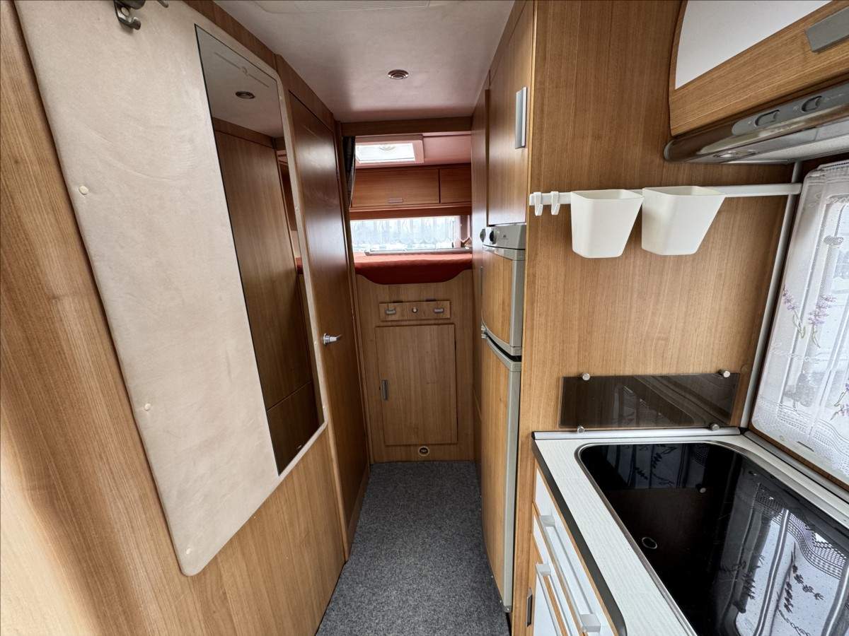 Půjčíme Vám levněji než v bance. Vaše stávající vozidlo rádi vykoupíme nebo vezmeme na protiúčet a lze jej použít i jako akontace na Vámi vybrané vozidlo. Vyřízení úvěru do 30 min. ----- K vozu je možno sjednat prodlouženou záruku až na 36 měsíců; Druhý majitel; Zadní příčná postel + velké spaní v alkovně + sezení rozložitelné na lůžko; velká lednice s mrazákem 12/230V/plyn; topení Truma Combi; nosič kol; žebřík; samostatný sprchový kout; televize + anténa ... Celková hmotnost 3500kg; provozní 3075kg ... Celková délka: 726cm; výška: 300cm a šířka: 234cm;